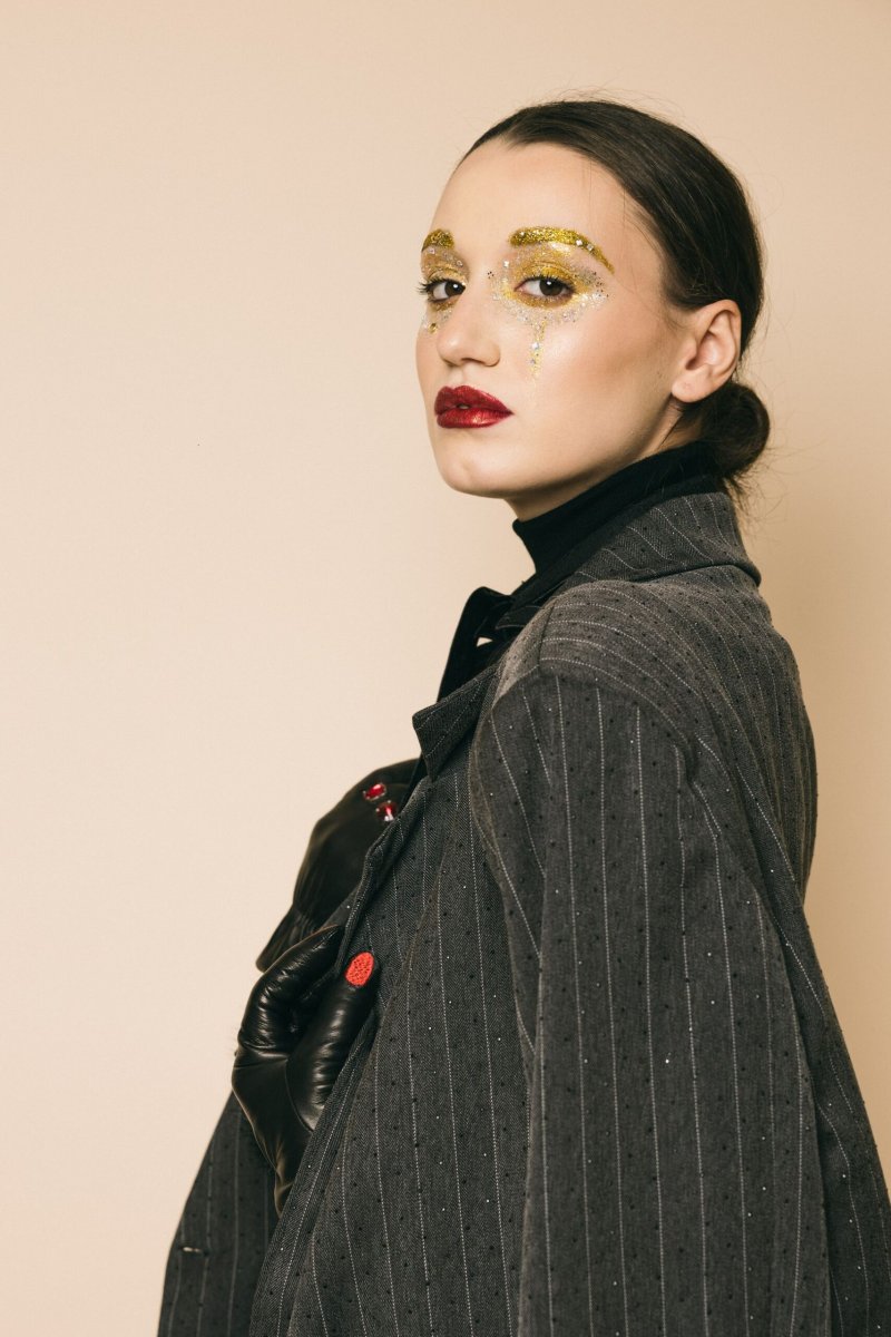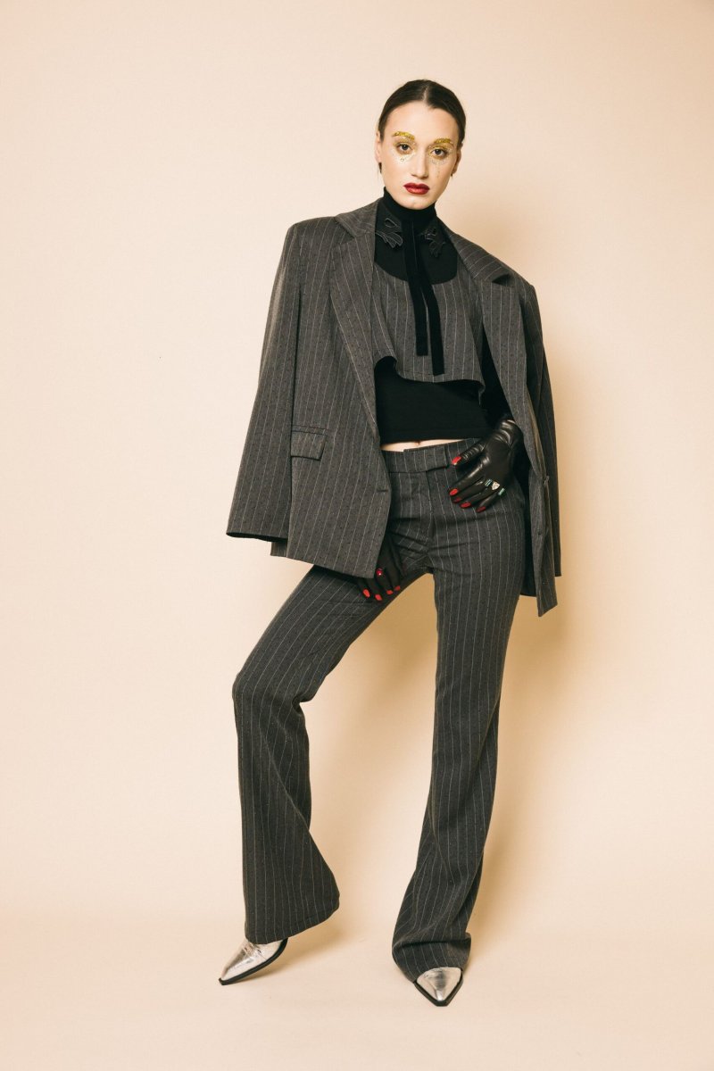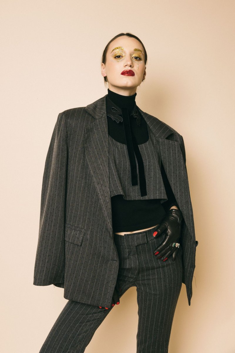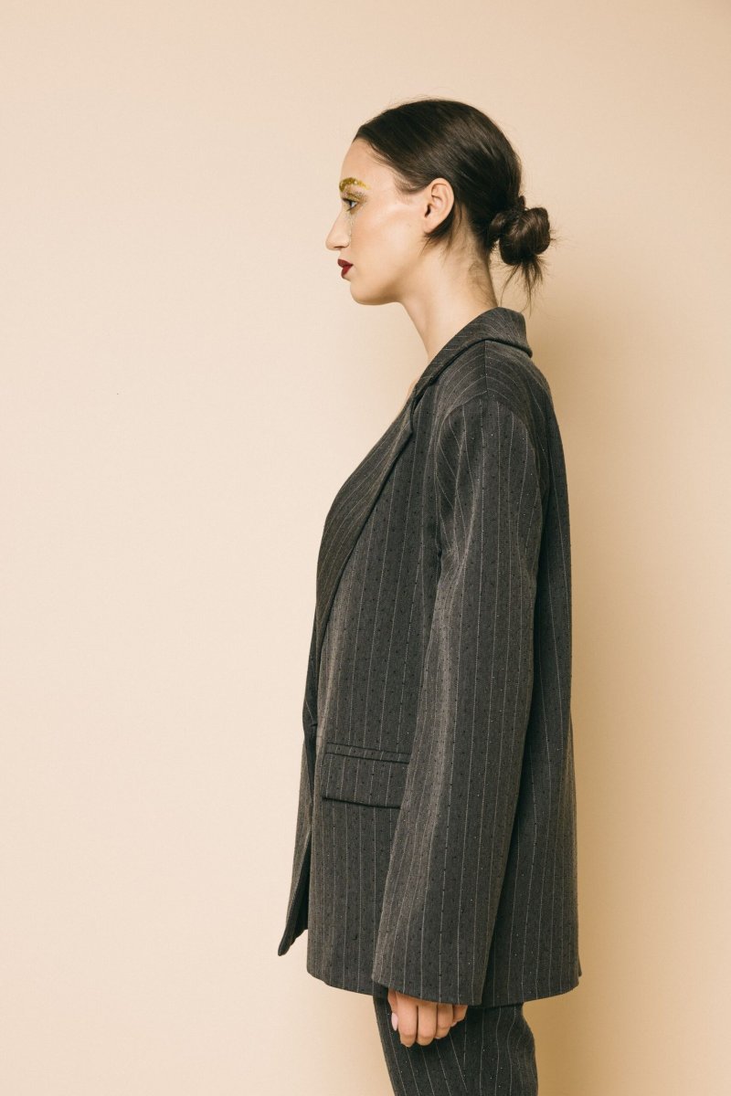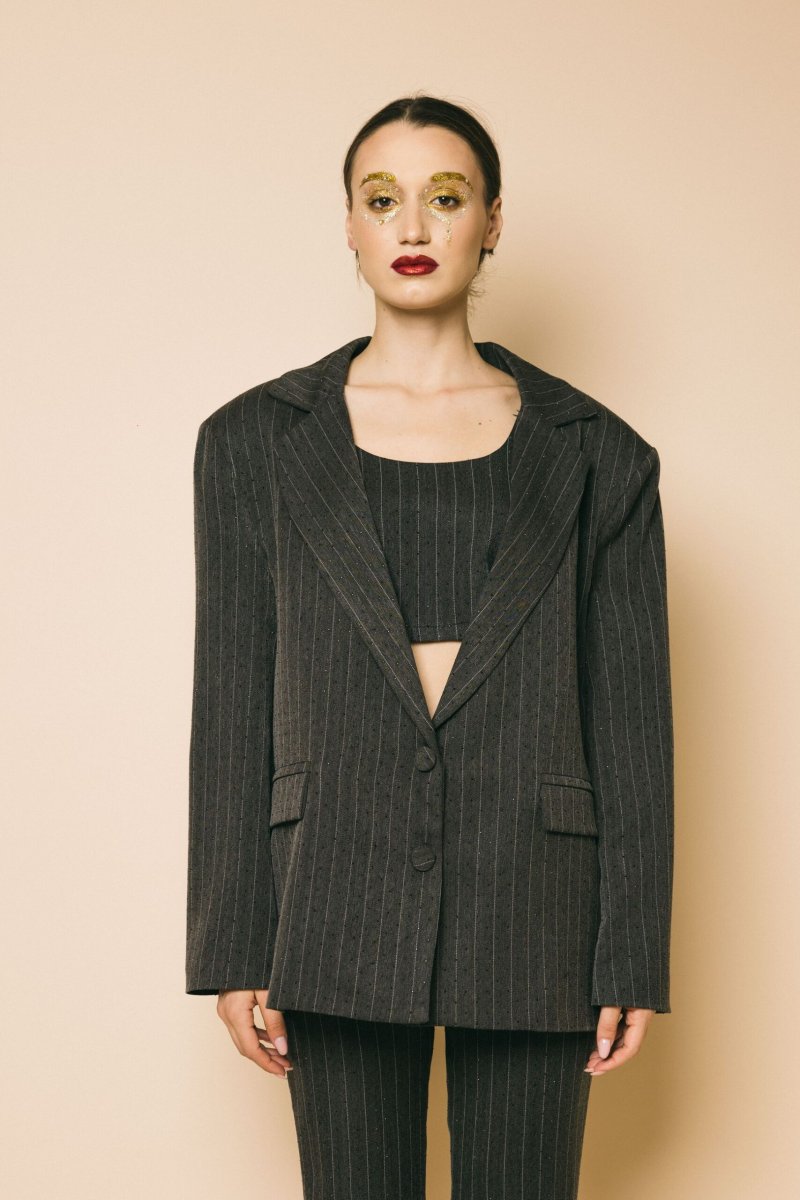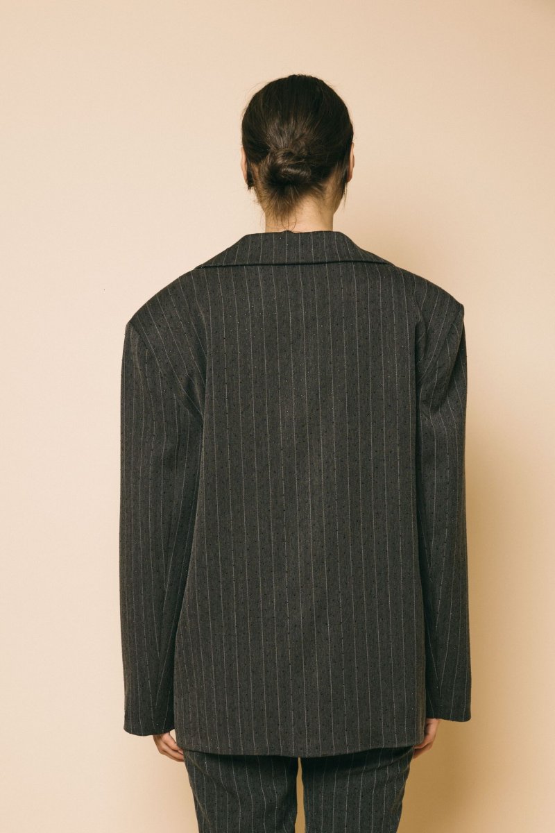Blazer over tessuto gessato con strass black