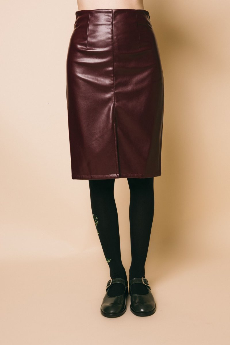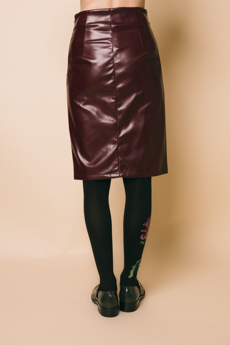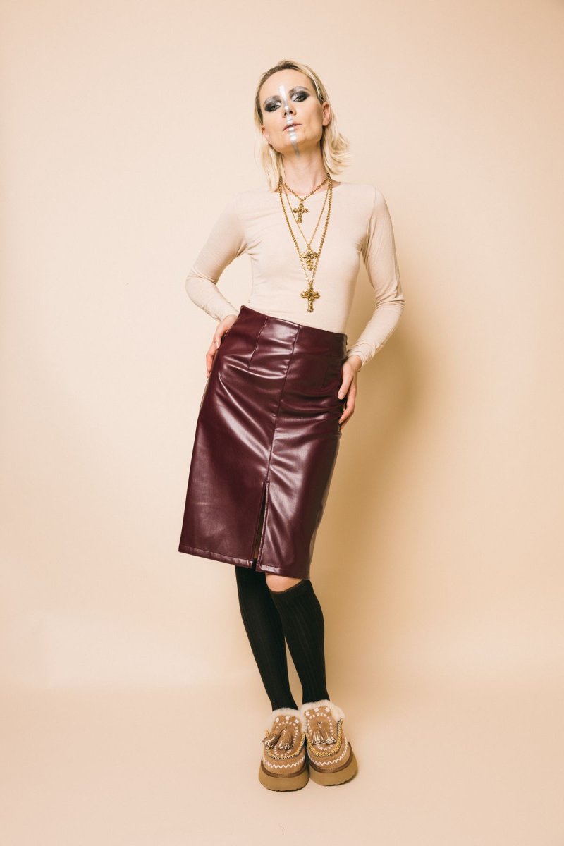 Gonna tubino in ecopelle vita alta, spacco anteriore, chiusura con zip invisibile