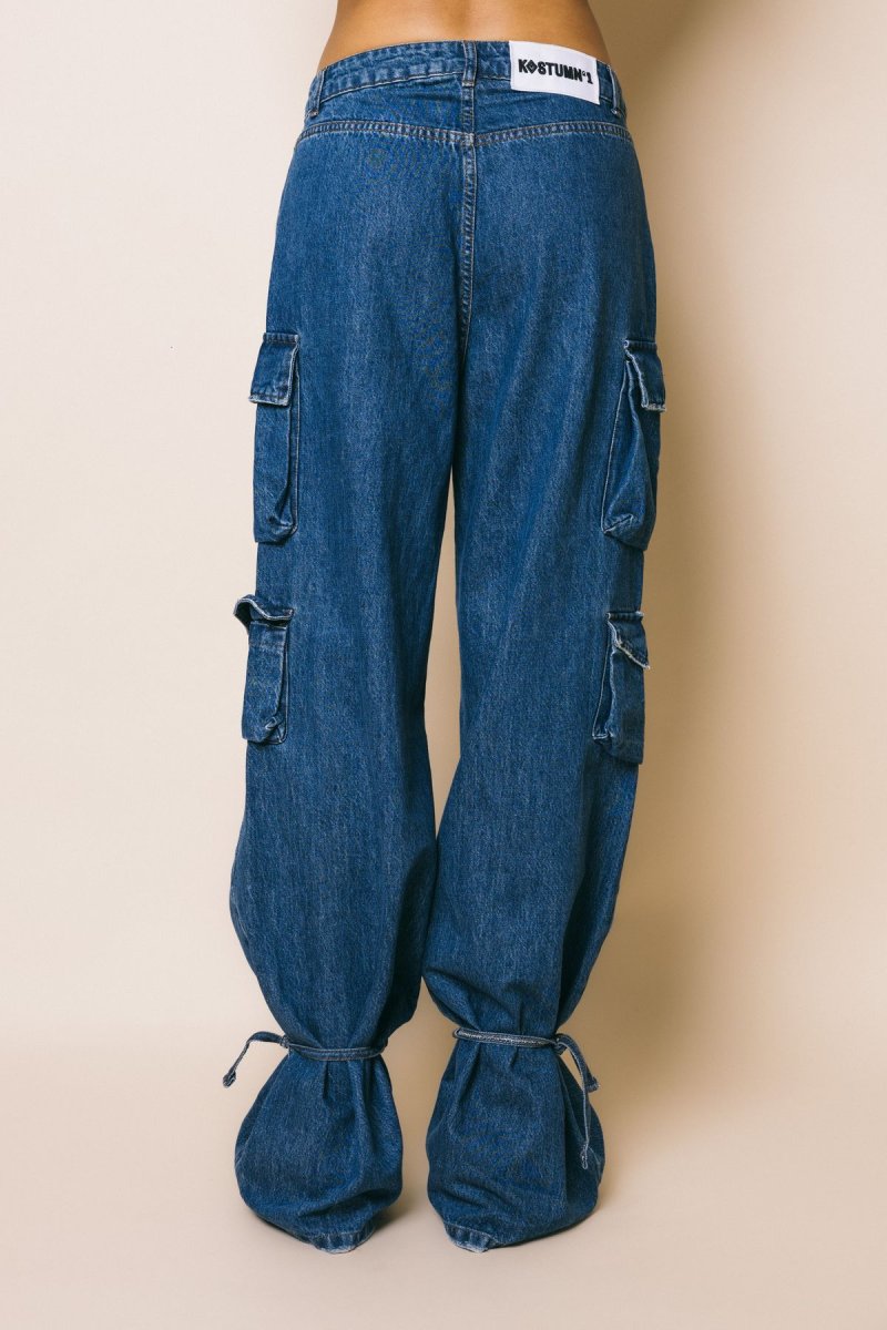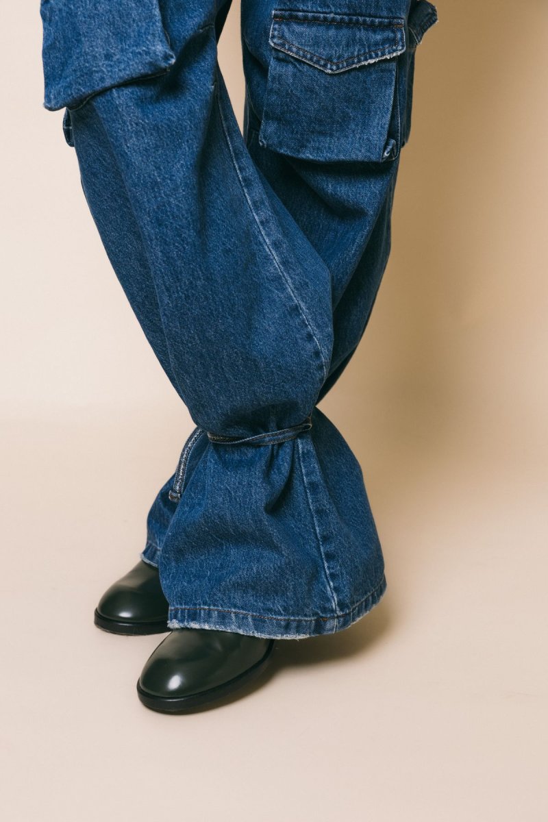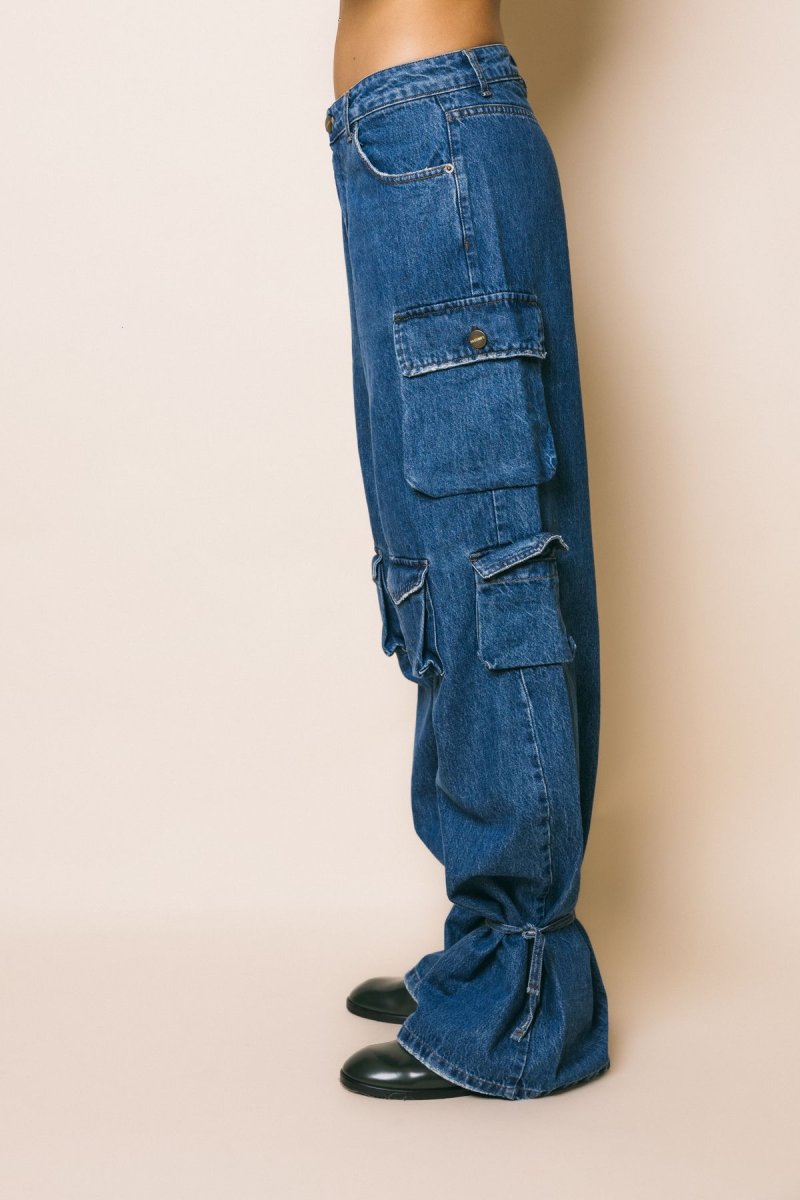 Denim cargo vita alta, gamba morbida con stringhe da poter allacciare sul fondo