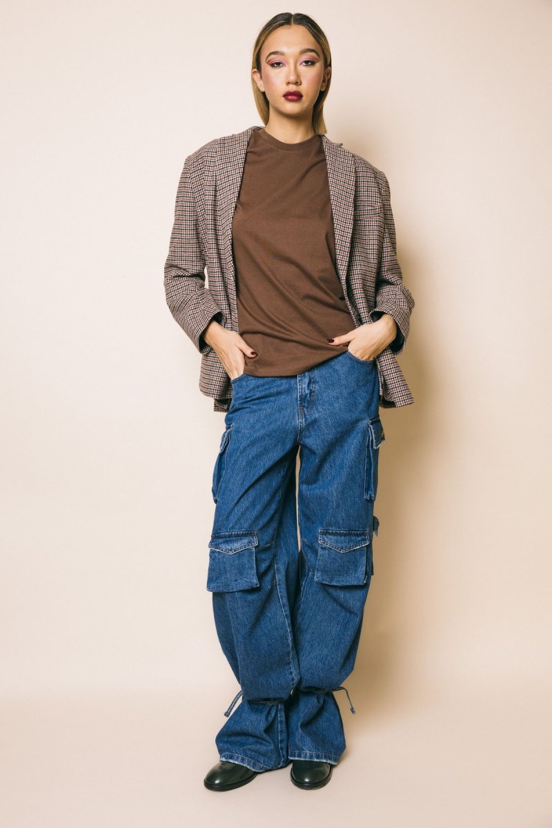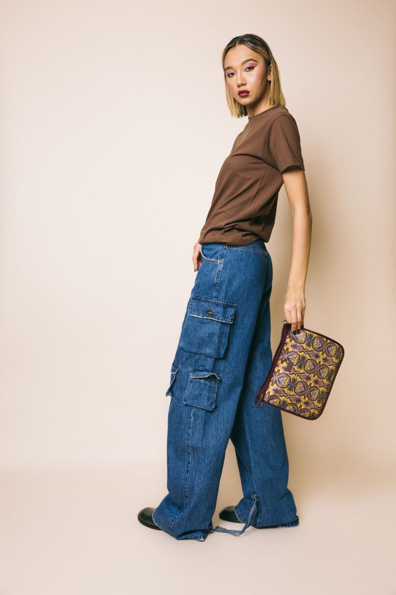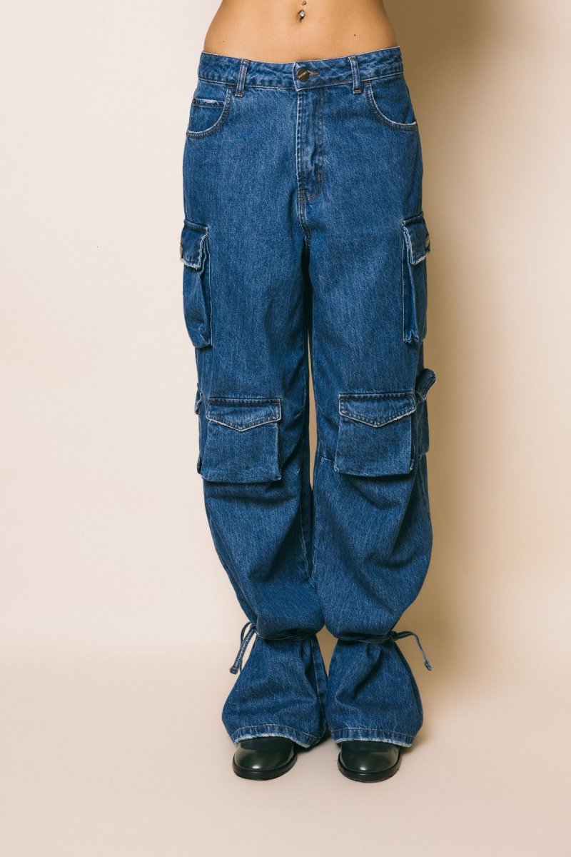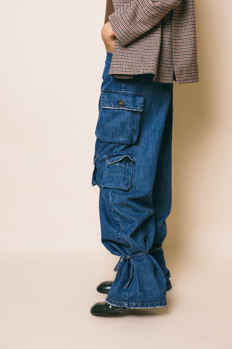 Denim cargo vita alta, gamba morbida con stringhe da poter allacciare sul fondo