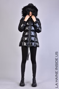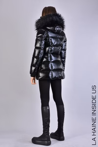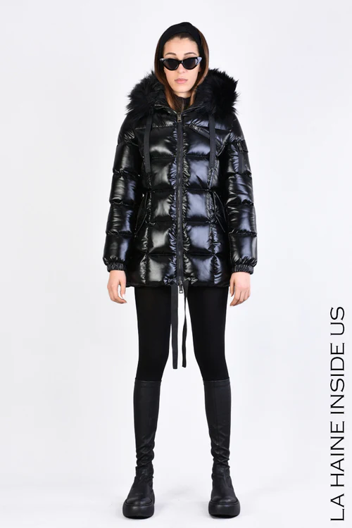 3/4 nylon down jacket – Padded with 250gr. of wadding – Zip closure with double slider – Removable oversize hood – Lined with faux fur – Pockets