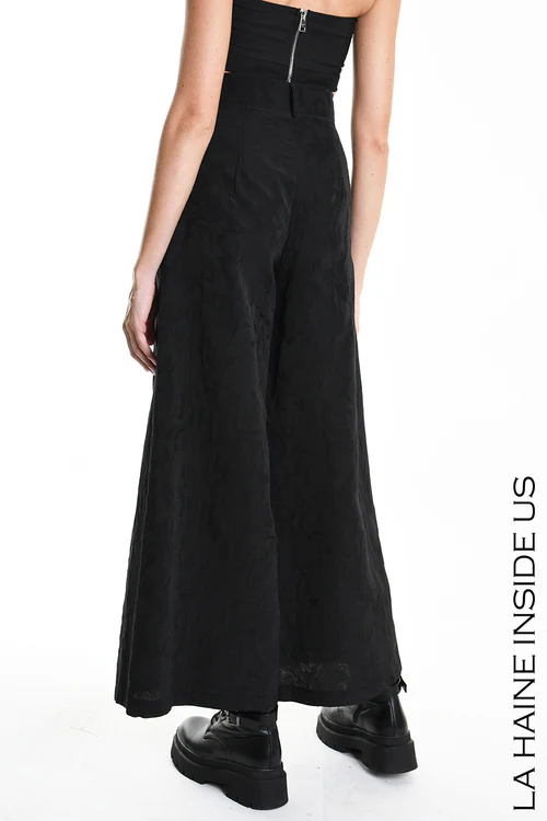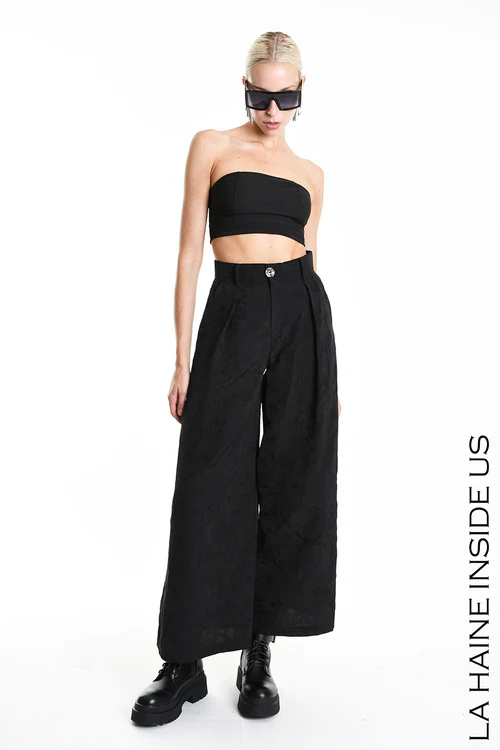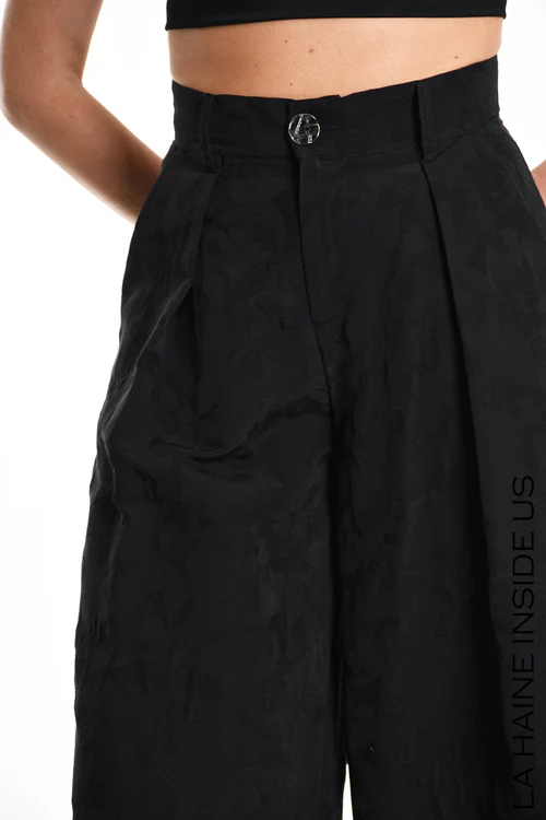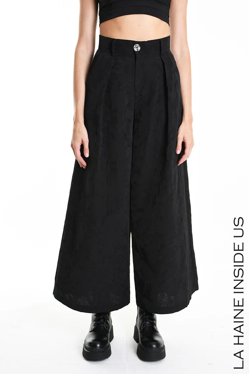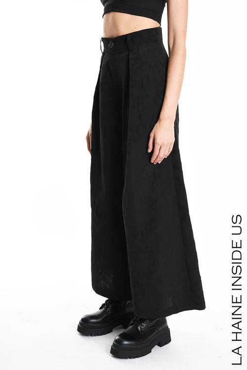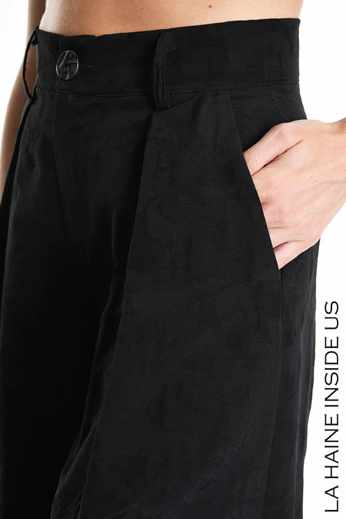Jacquard cotton wide trouser – Pinces – Pockets – Zip & button closure