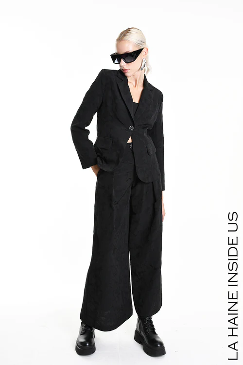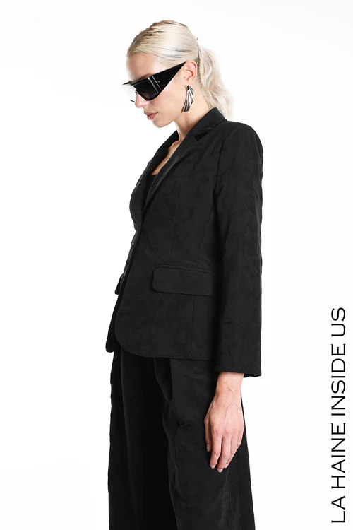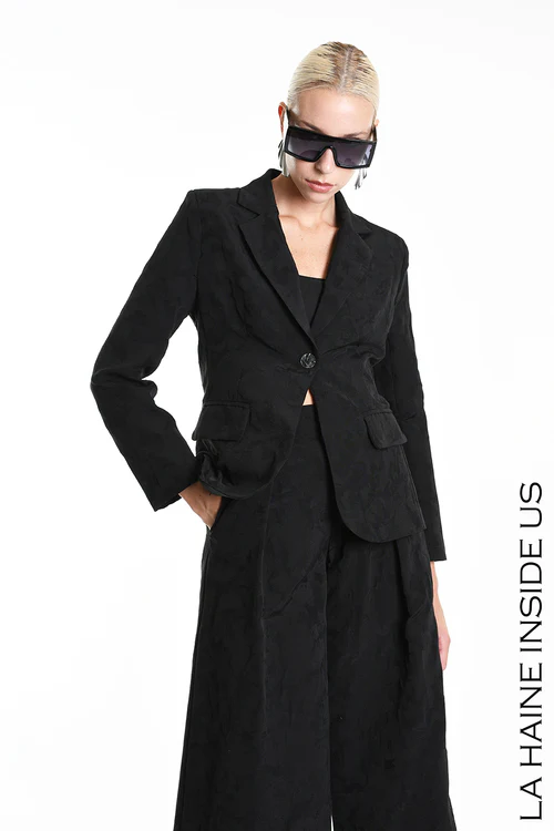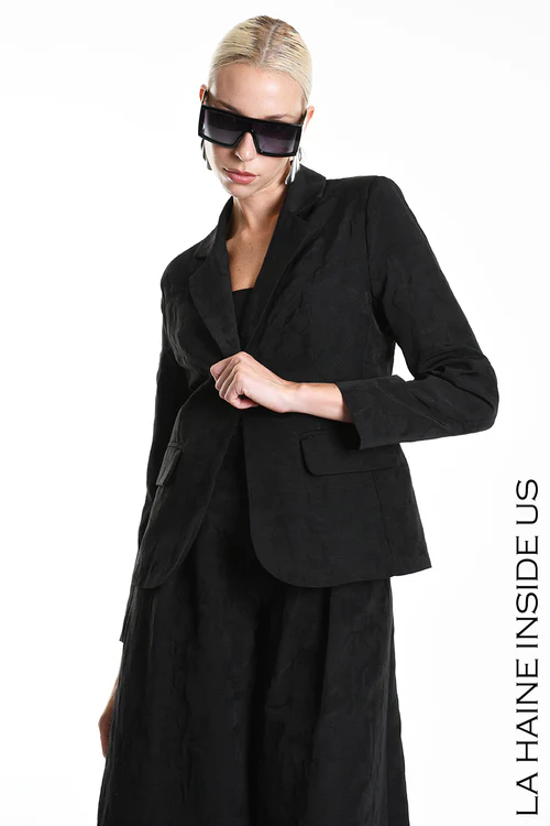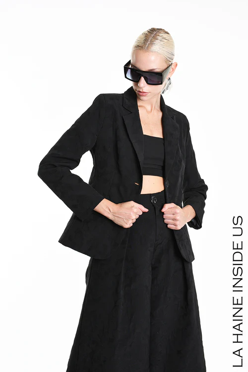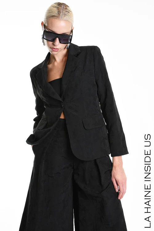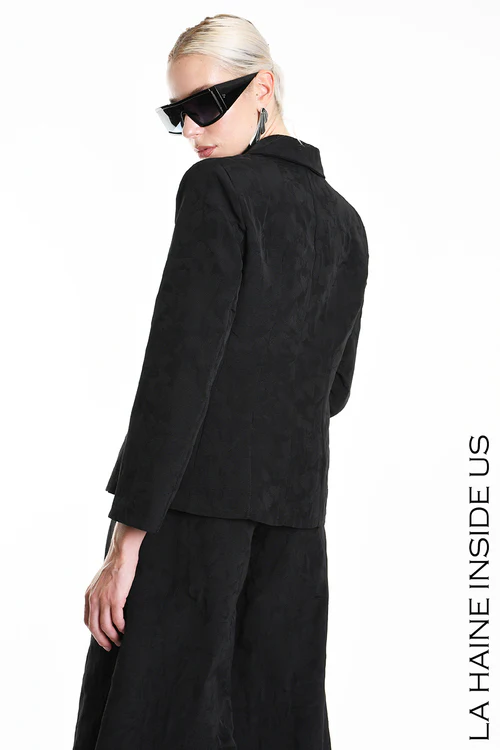 Giacca regular in cotone jacquard – Foderata – Tasche con patta – Chiusura bottone