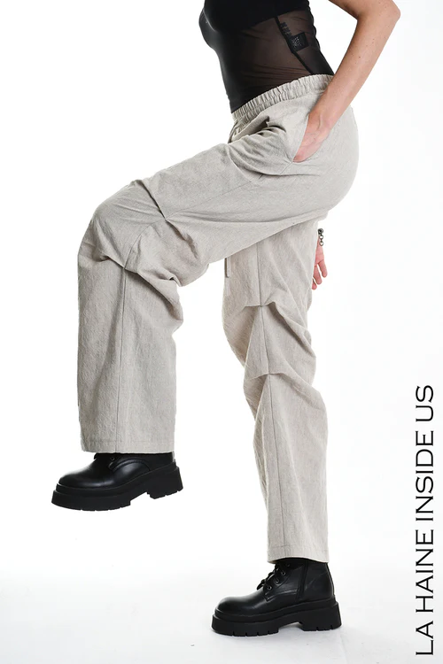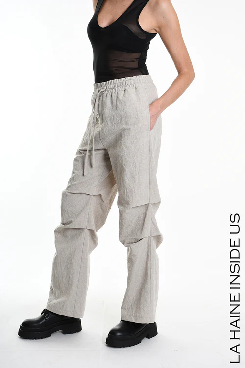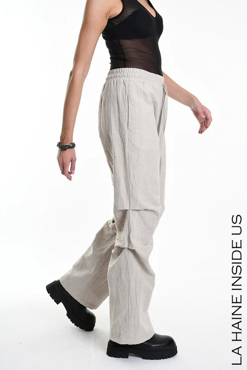 Pantalone palazzo in lino cotone – Pinces – Vita elasticizzata con coulisse – Tasche