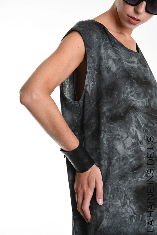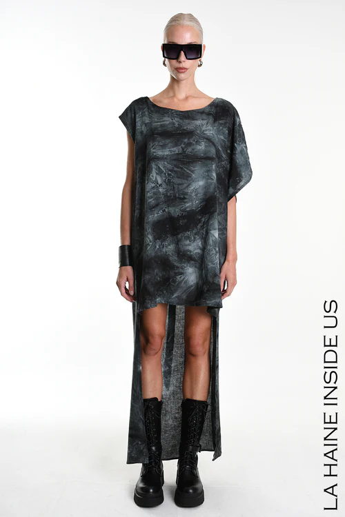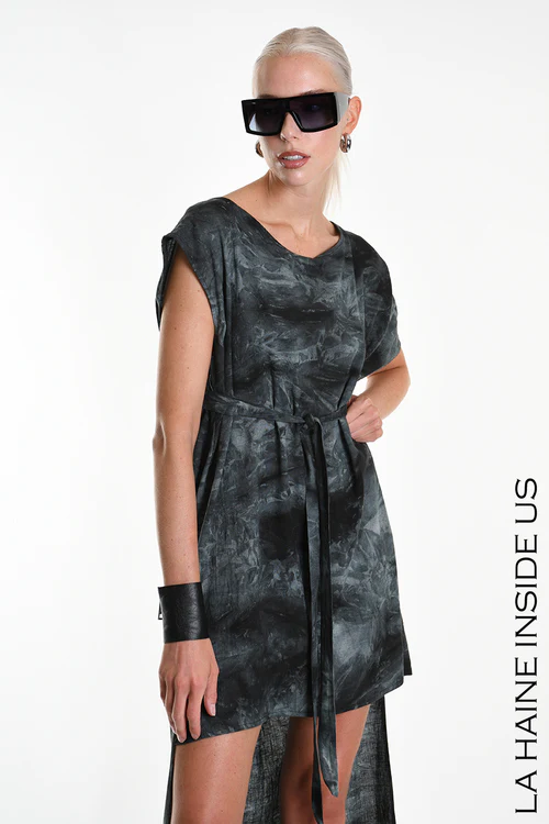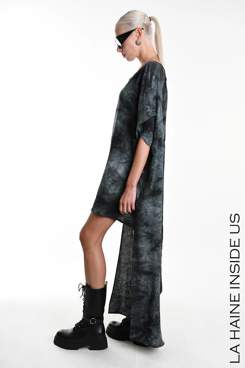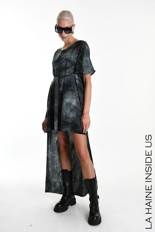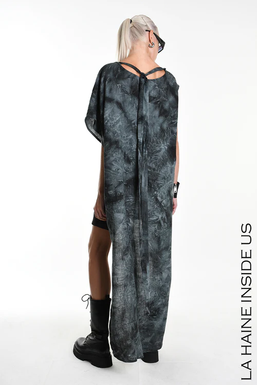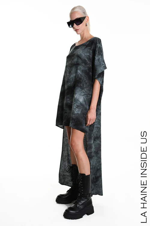 Linen viscose asymmetric dress – Maltinto – Kimono sleeves – Back adjustable laces