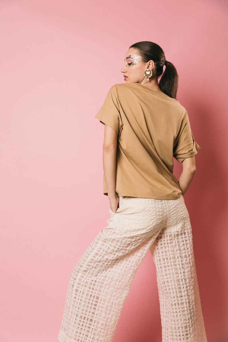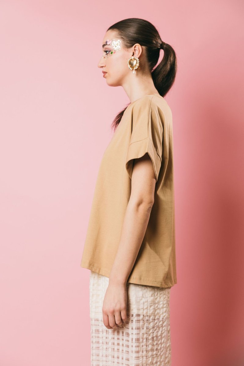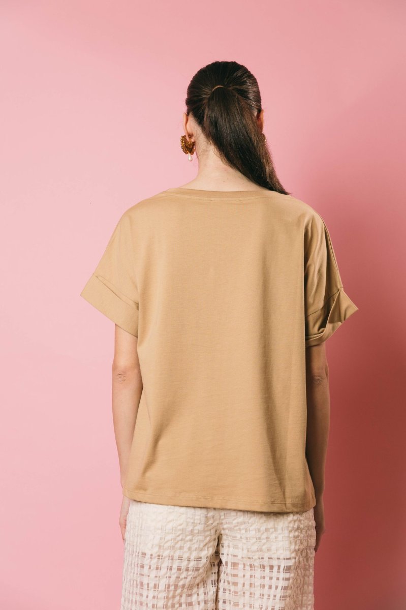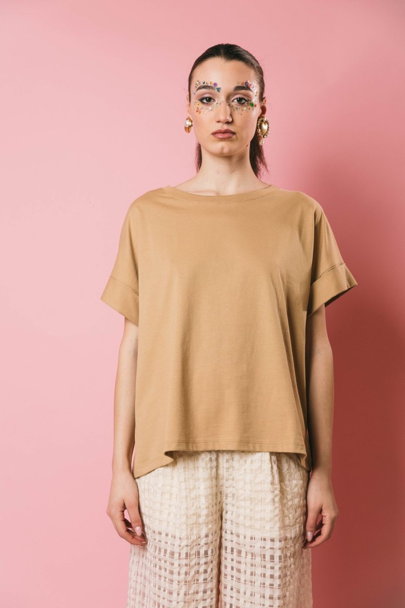 T-shirt oversize in puro cotone, modello scatolina mezza manica con risvolto