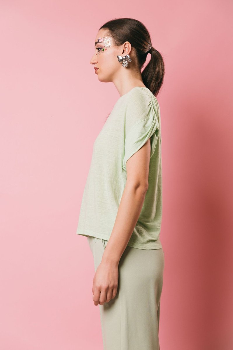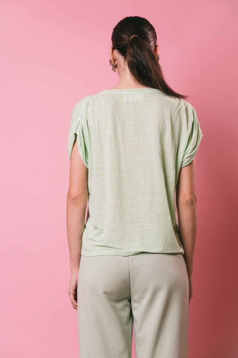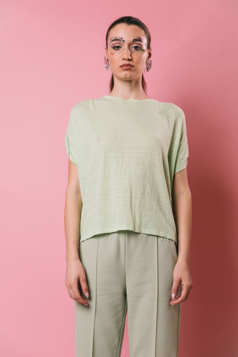 T-shirt oversize in lino, modello scatolina mezza manica con risvolto