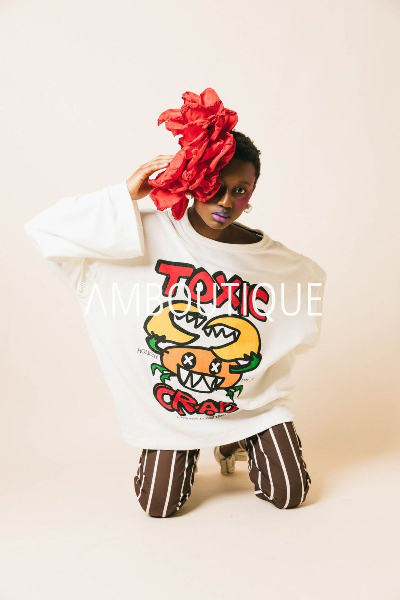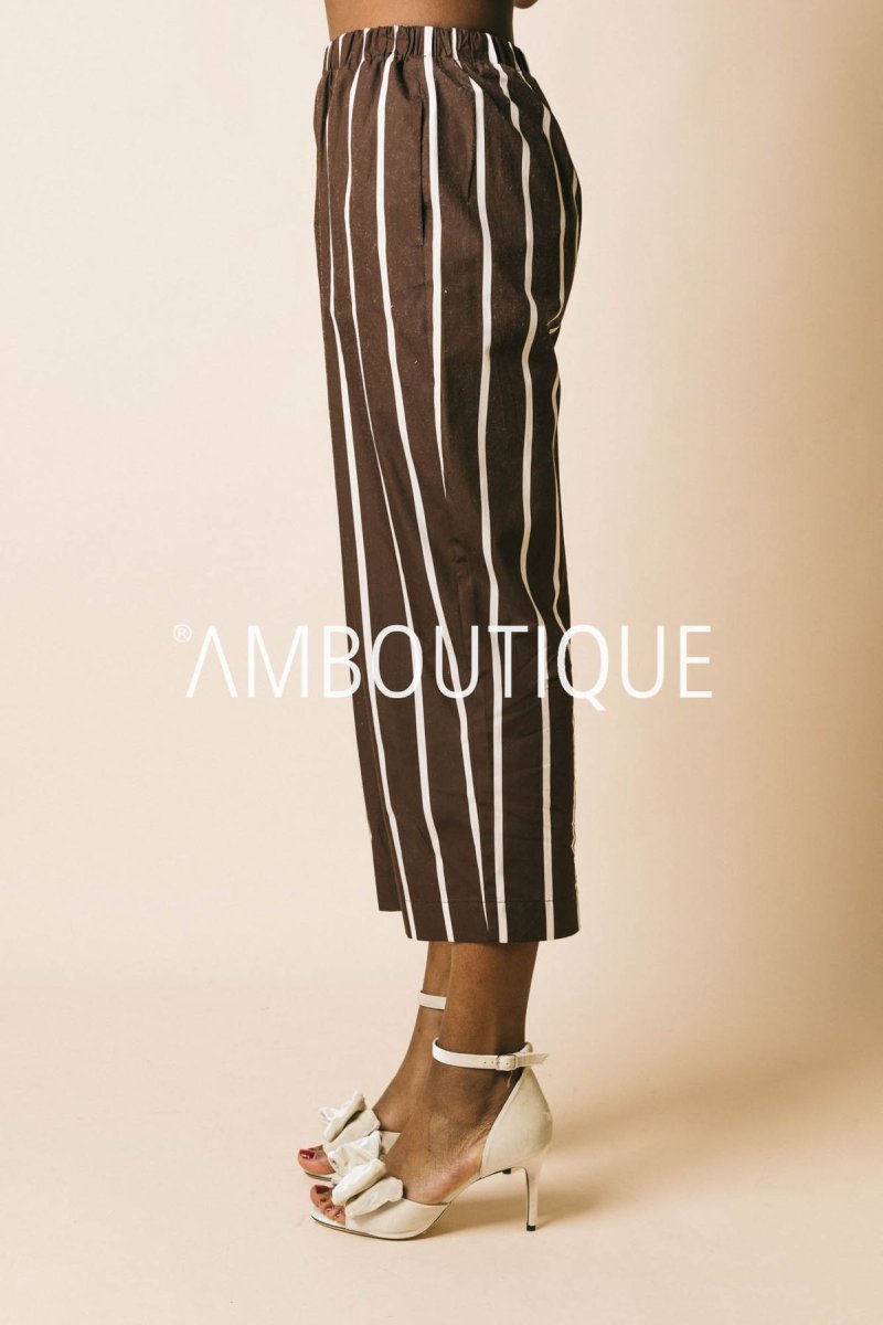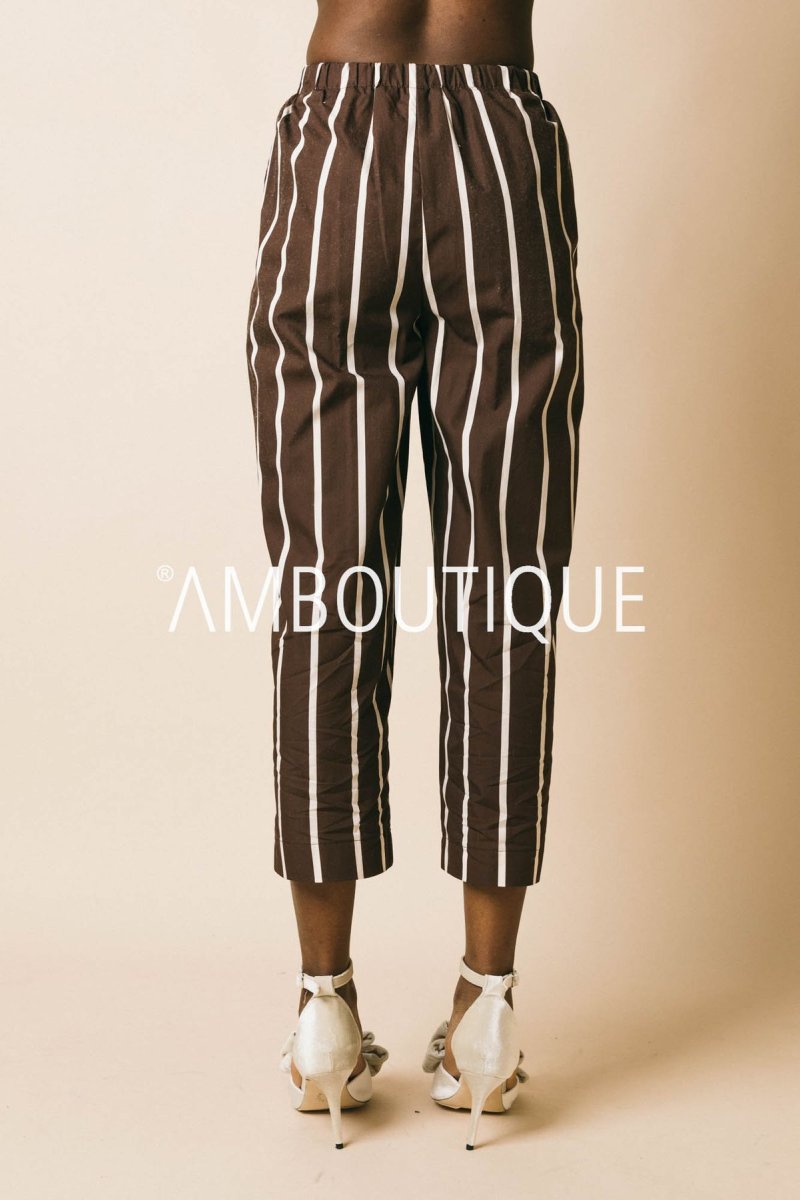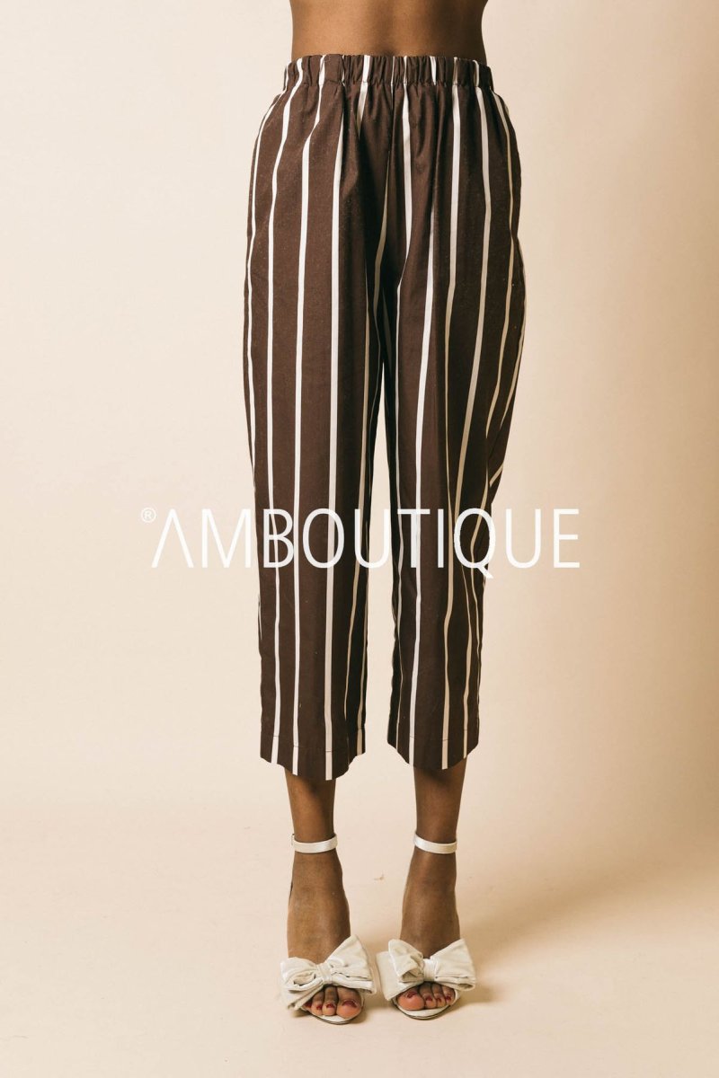 Pantalone in cotone a righe con tasche e gamba larga.