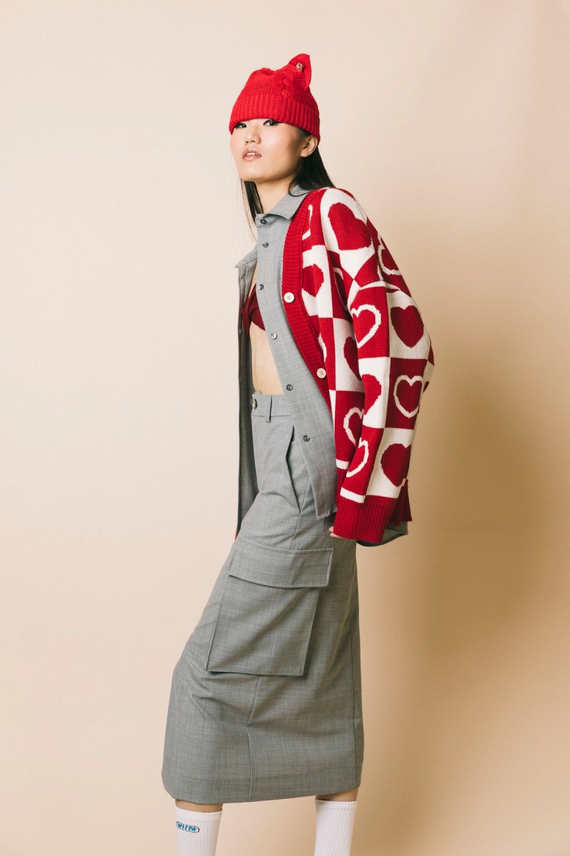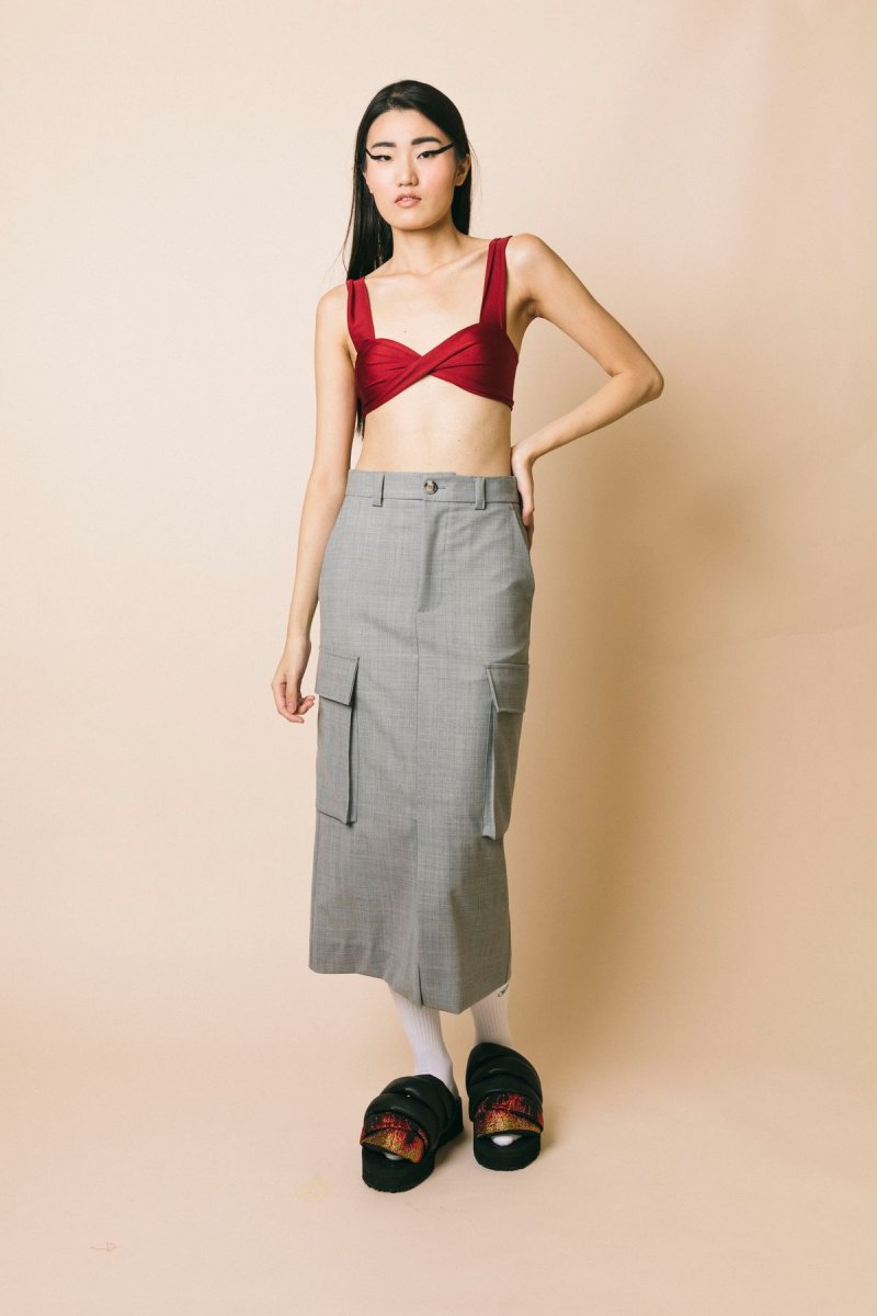 Gonna longuette con tasconi laterali e spacco centrale