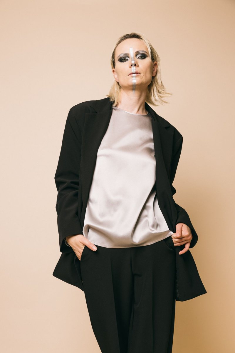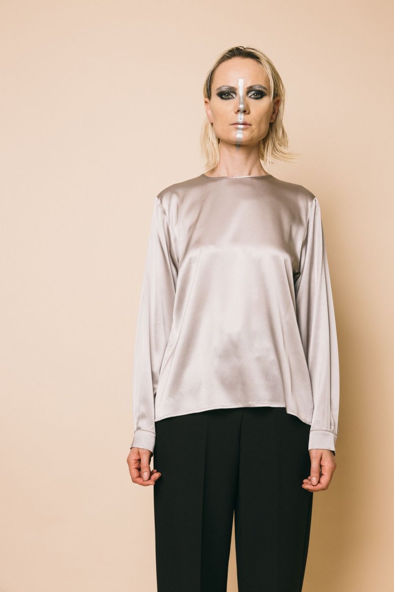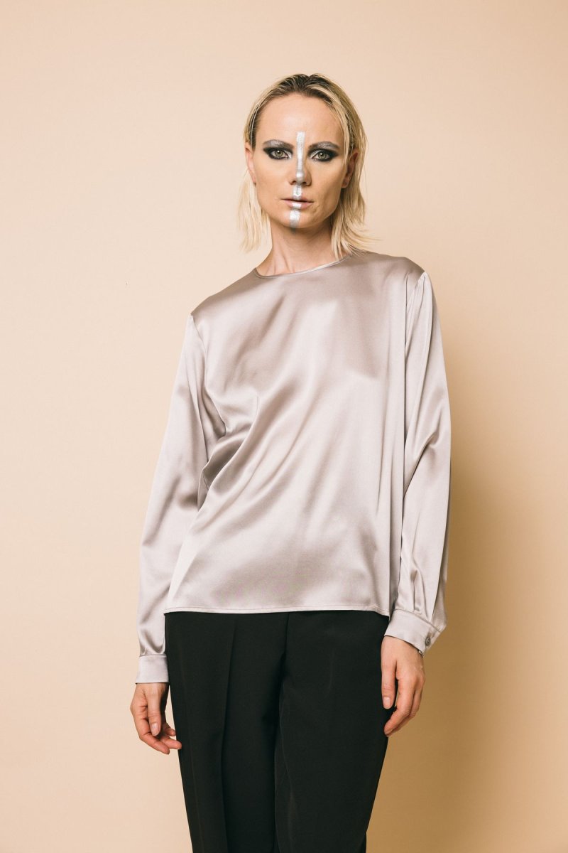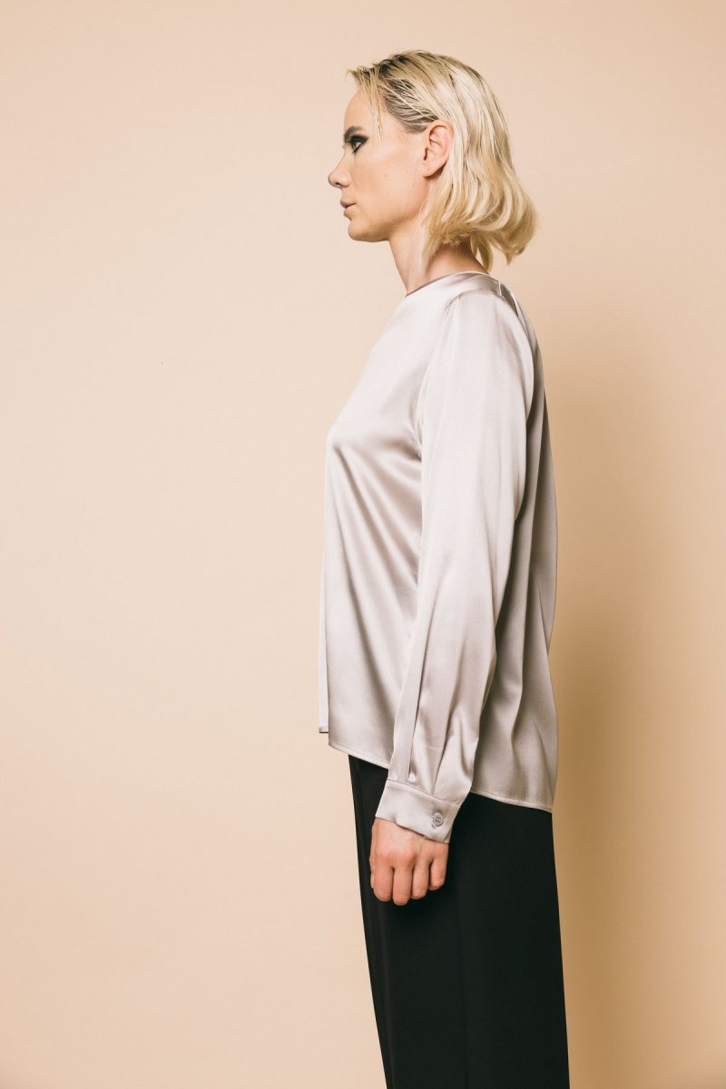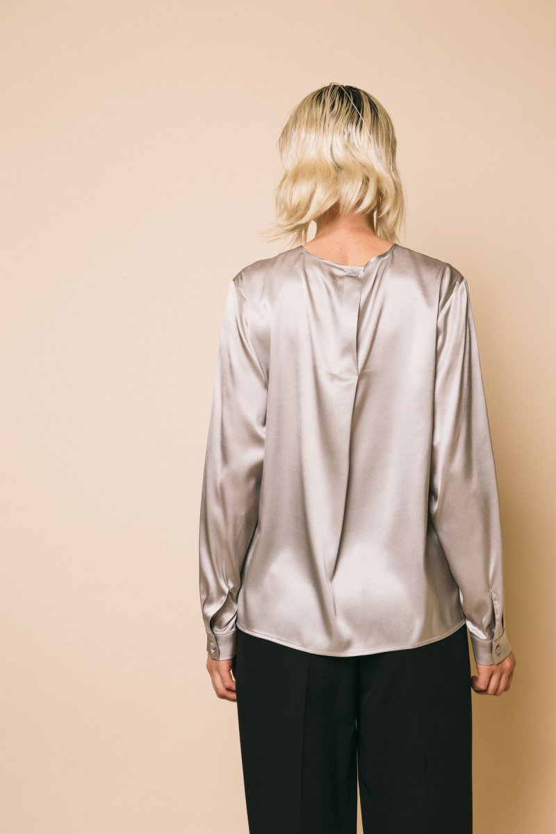 Blusa manica lunga seta con polsino e bottone posteriore