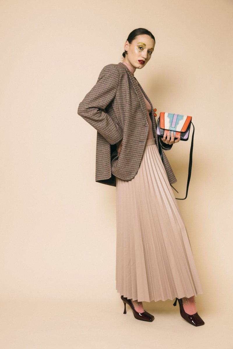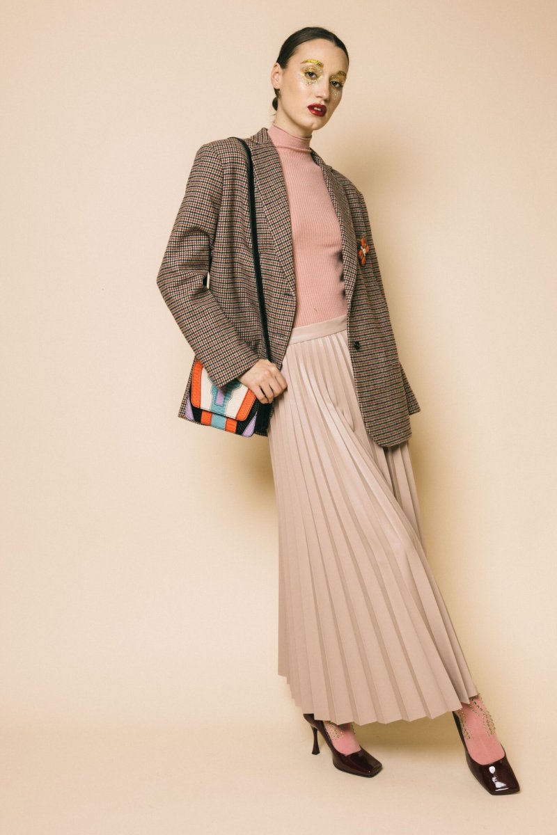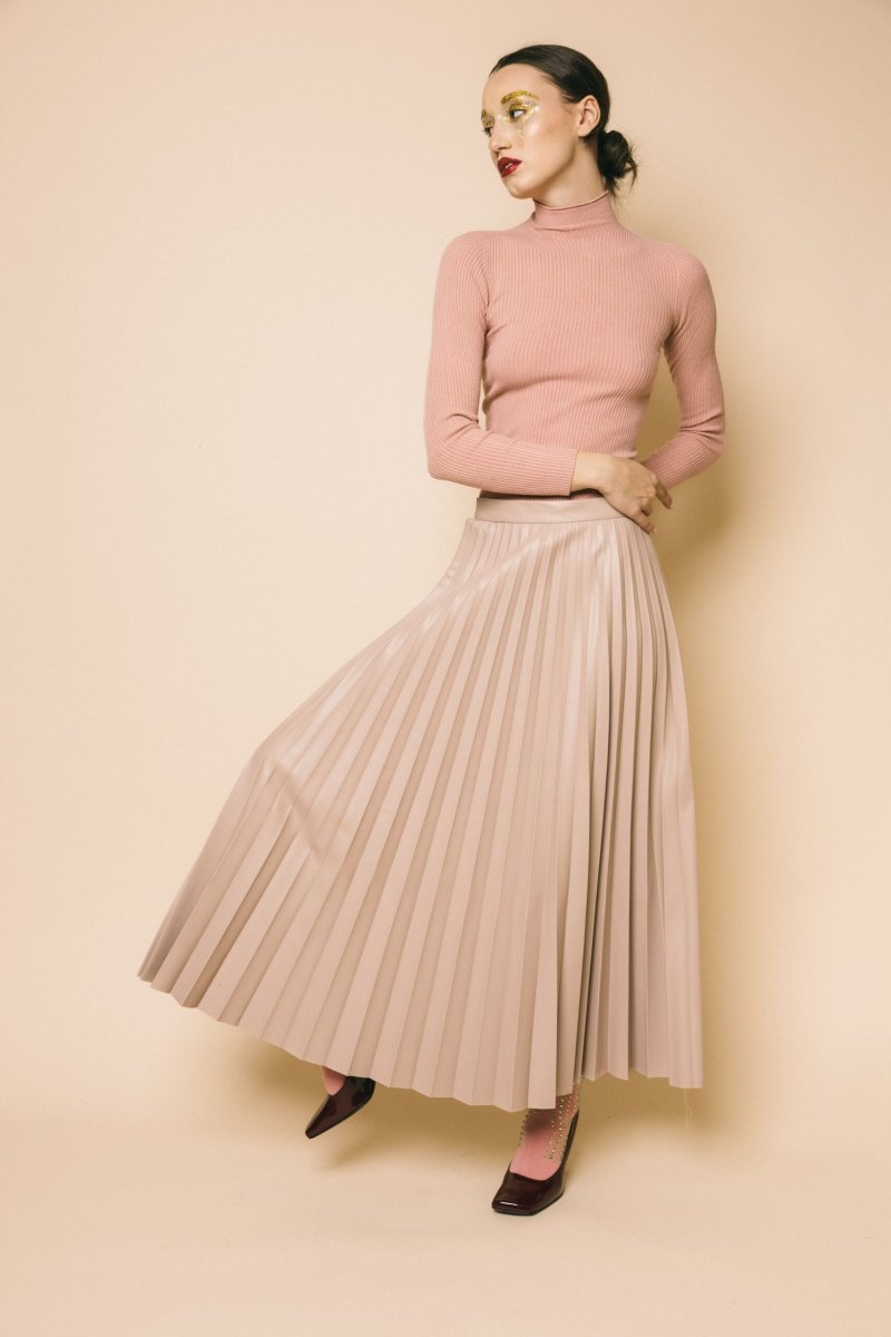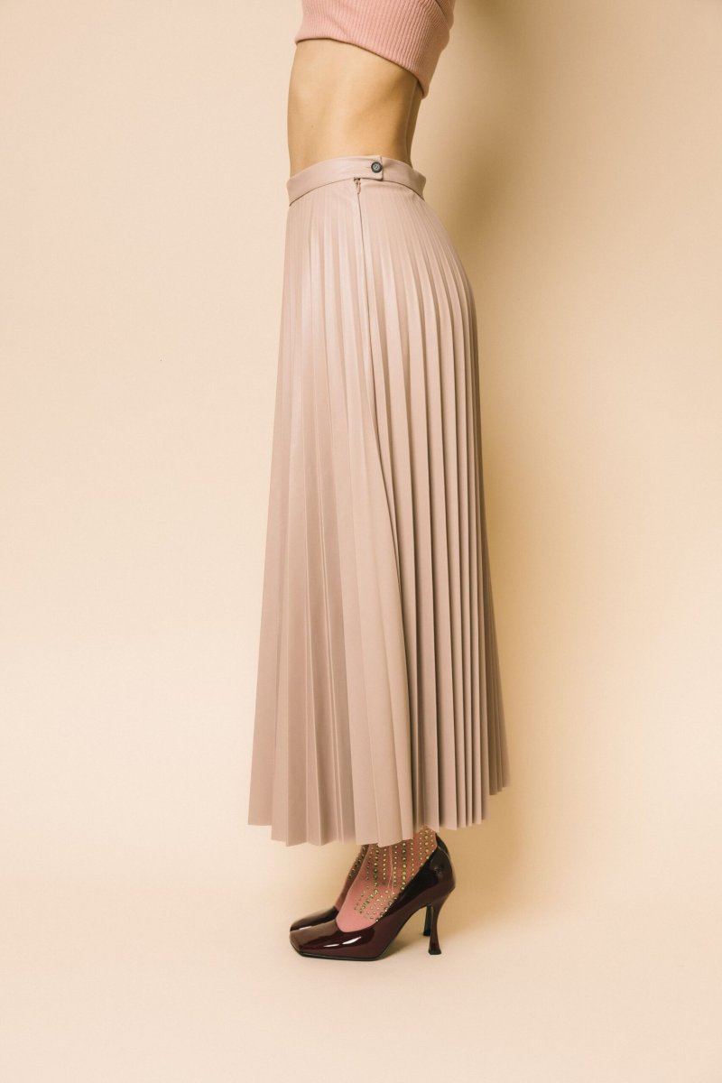 Gonna in pelle vita alta plissè