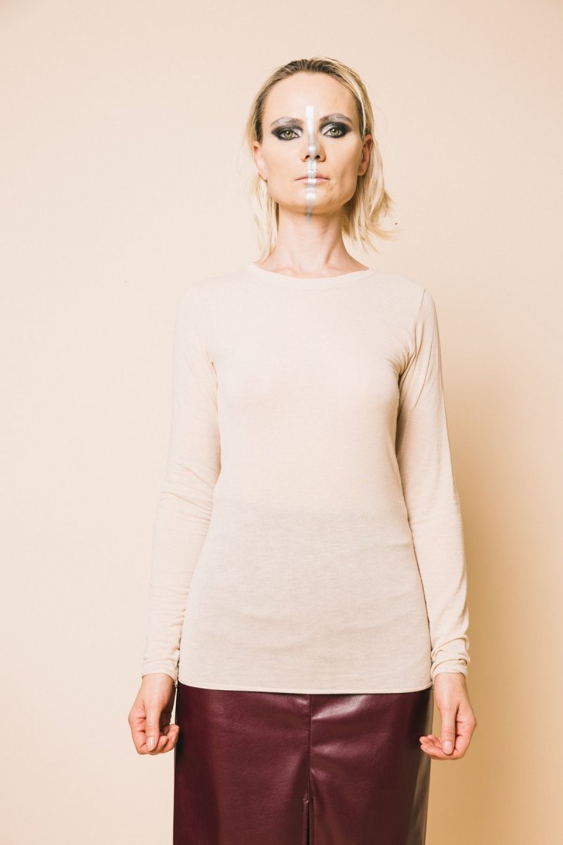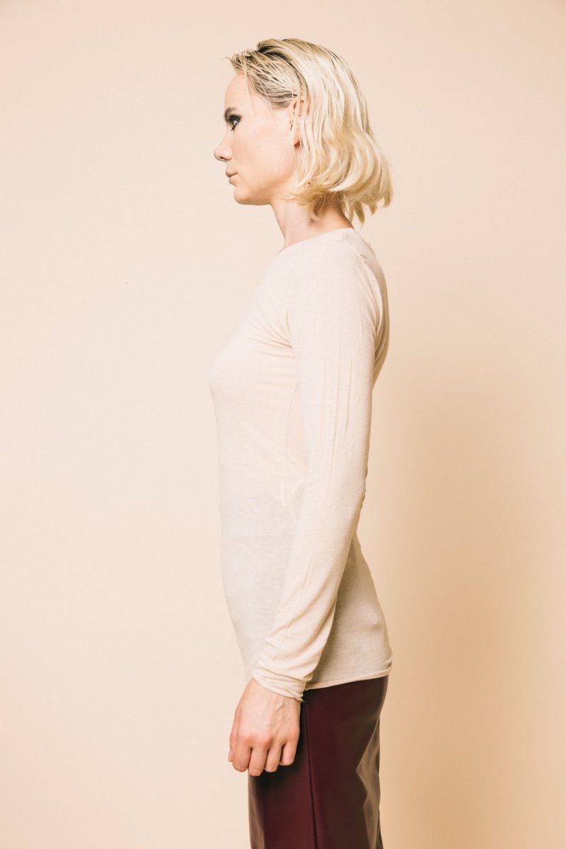 T-shirt sotto giacca in cachmere manica lunga
