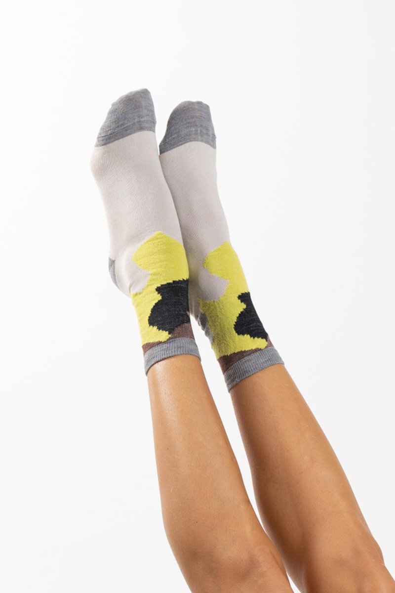 CALZA CORTA IN COTONE E LANA VERGINE A MACCHIE