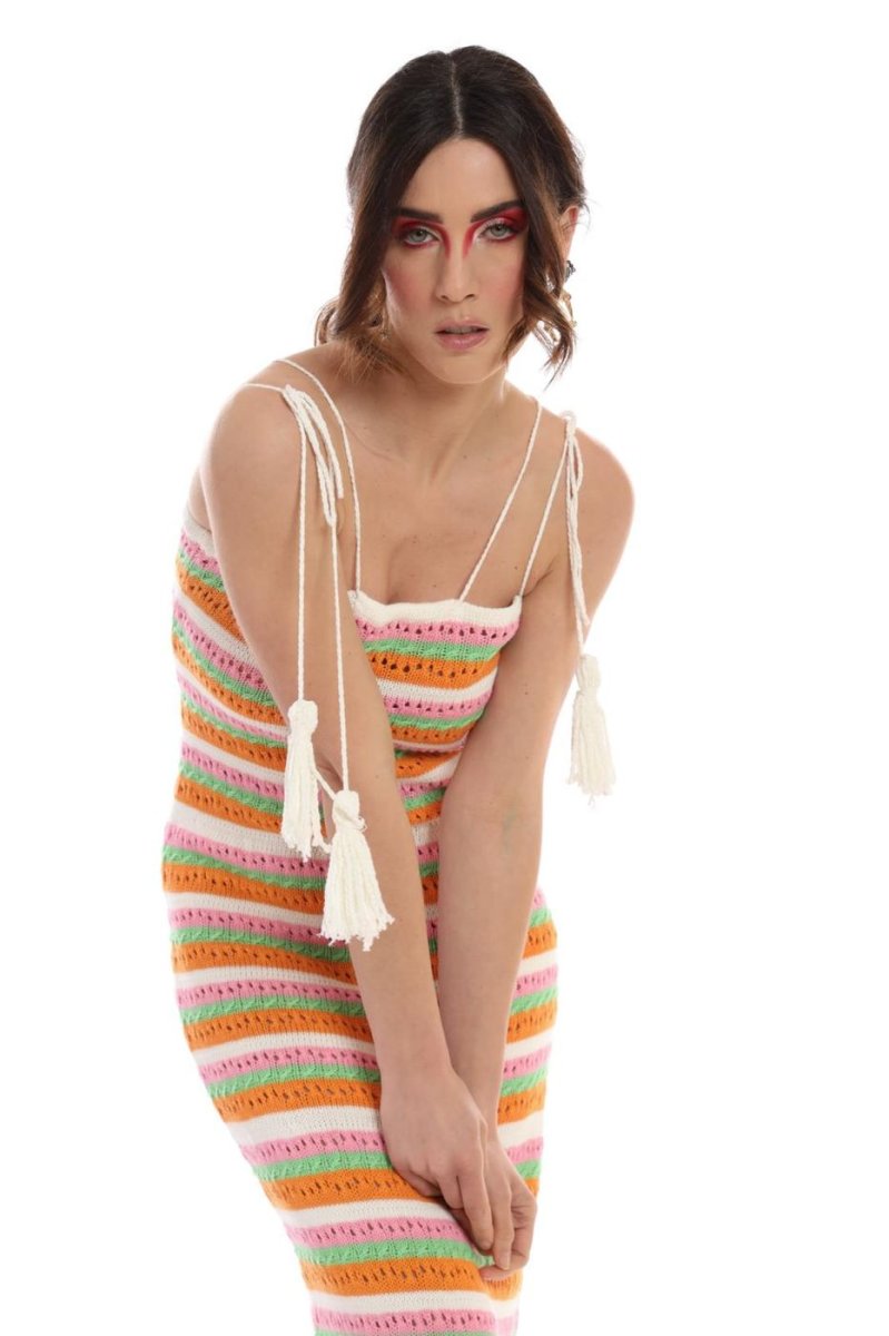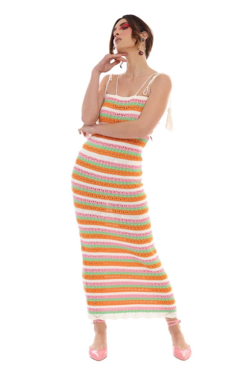 ABITO IN COTONE TRAFORATO MULTICOLOR