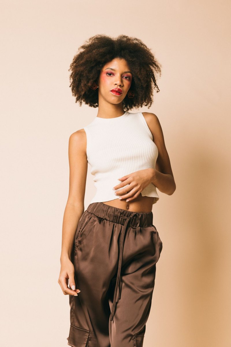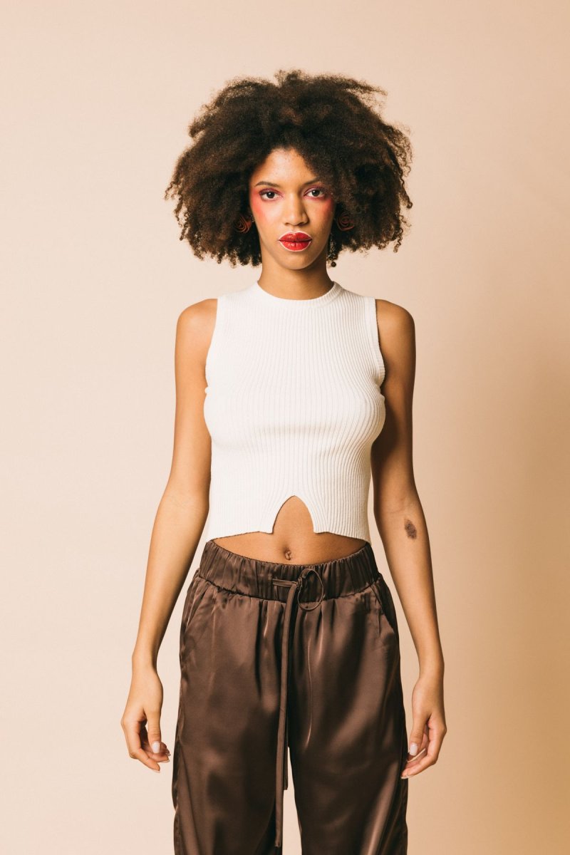 Top a costine con dettaglio apertura centrale