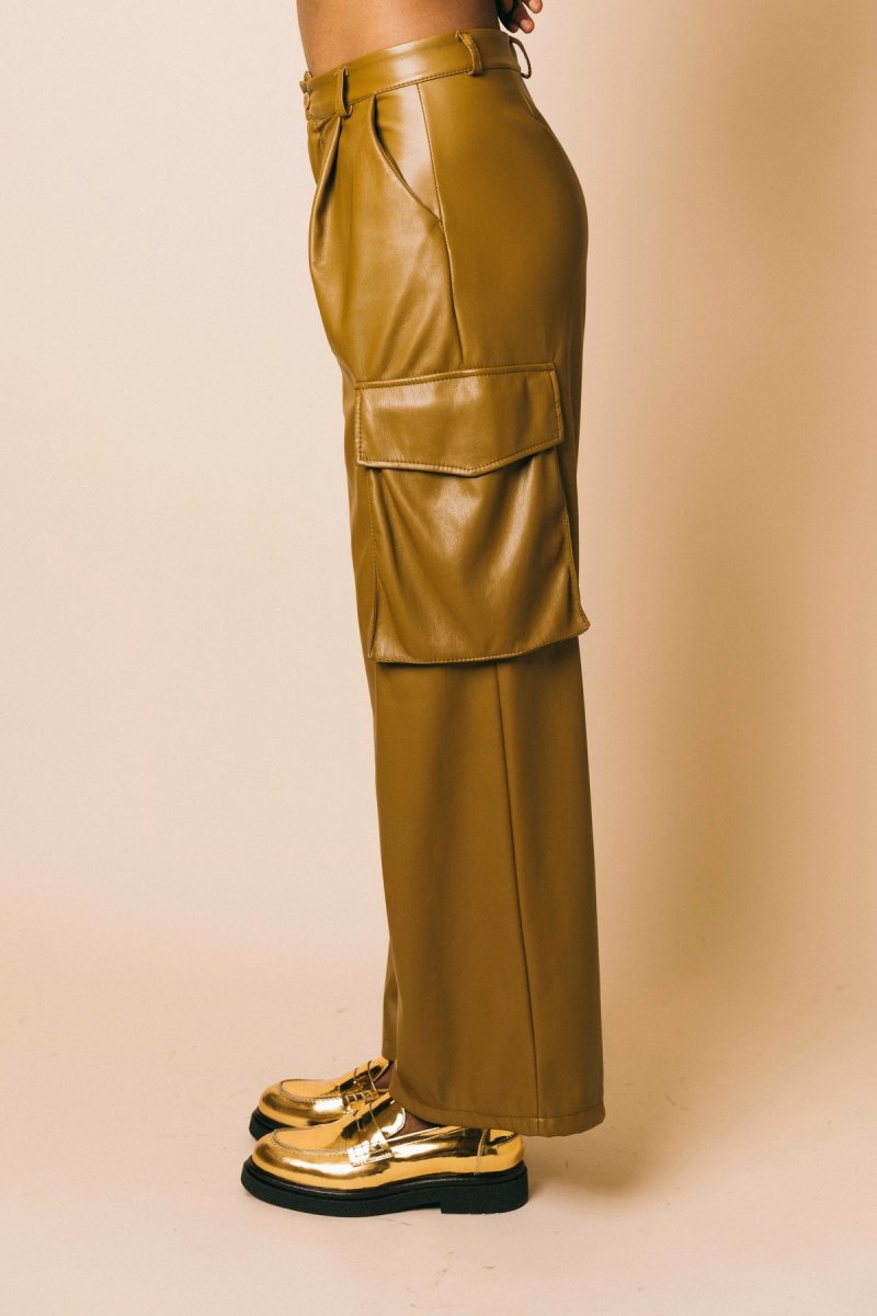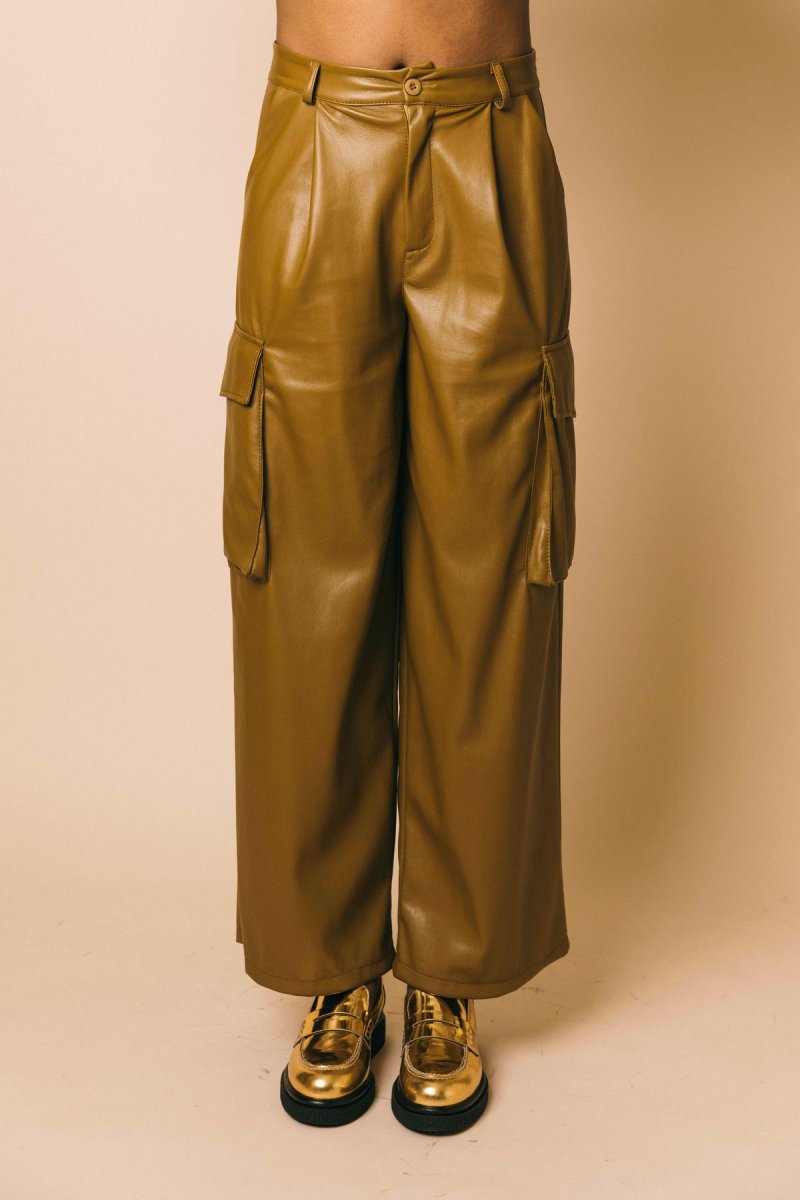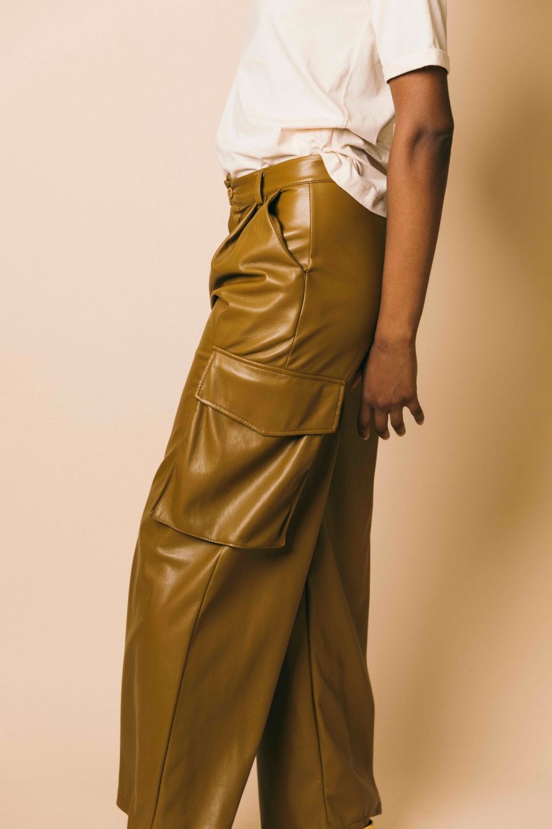 Pantalone cargo in ecopelle full lenght morbido con tasche laterali applicate