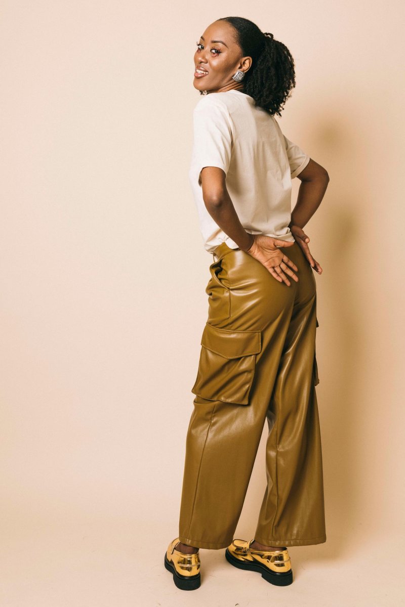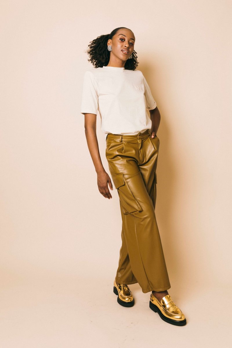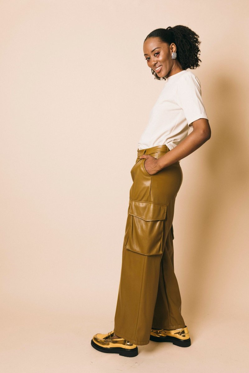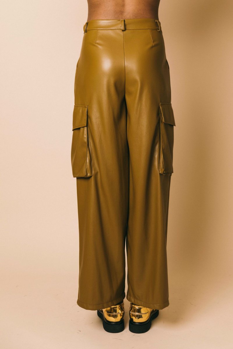 Pantalone cargo in ecopelle full lenght morbido con tasche laterali applicate