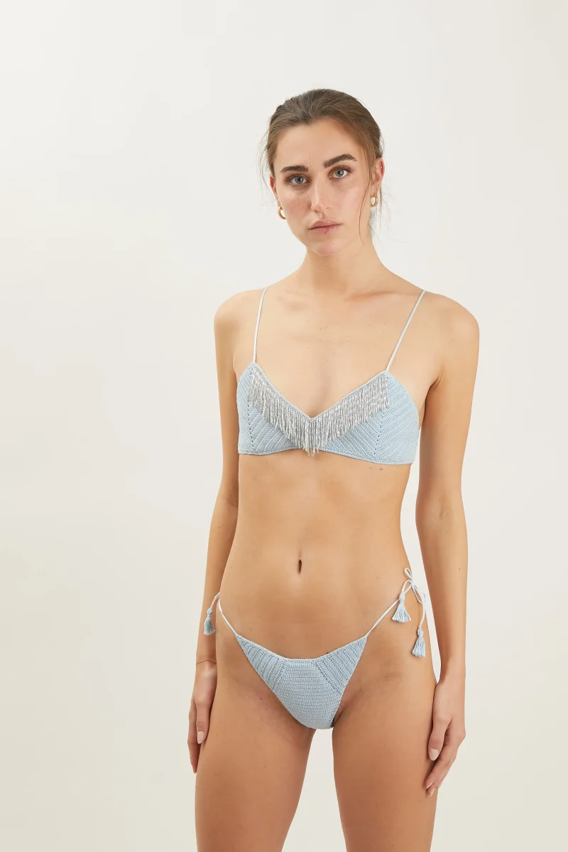 Uno sguardo lontano, all’orizzonte, dove il sole si intreccia con il mare. Da qui nasce la nostra Linea, Orizzonte, dai dettagli brillanti e ricercati. Un bikini come un gioiello da custodire.