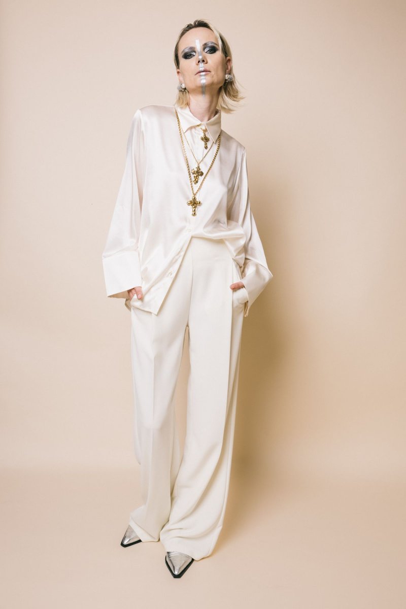 Pantalone palazzo vita alta con tasche ,