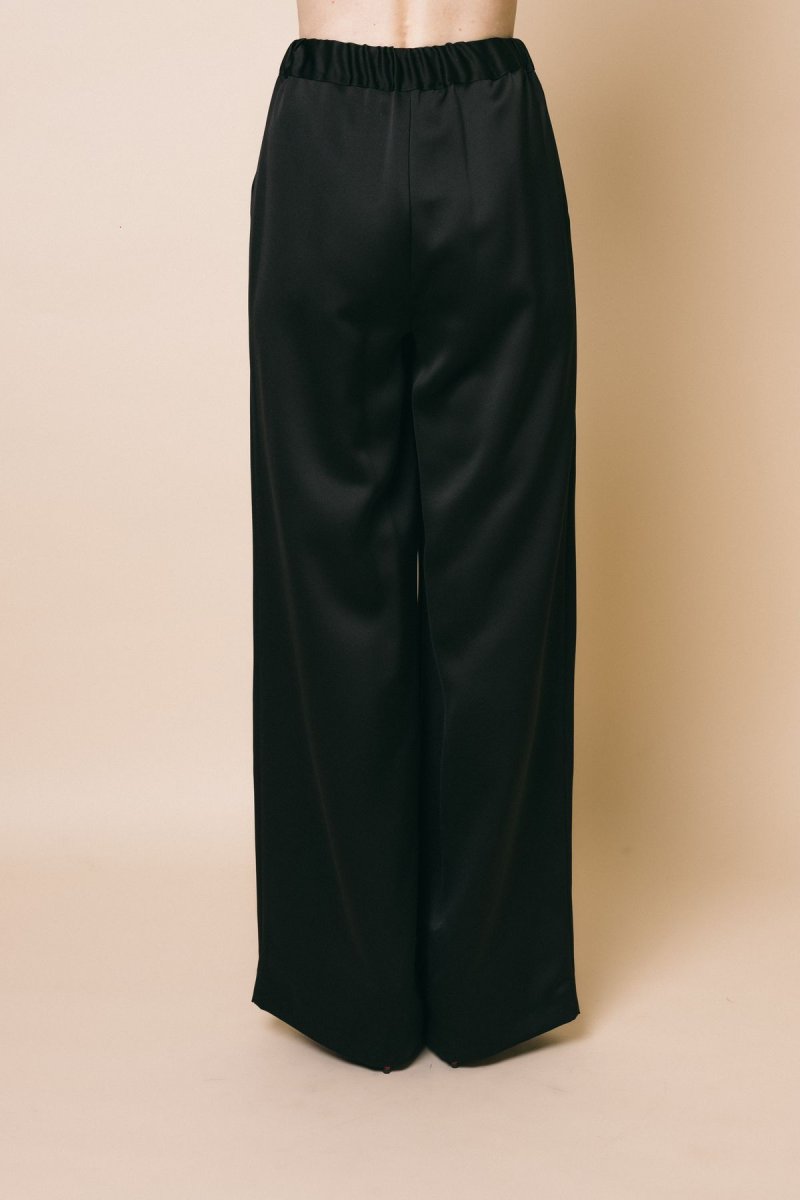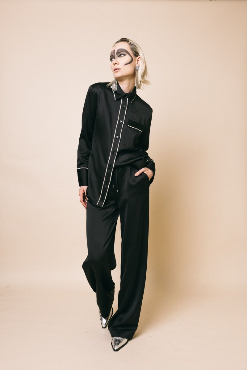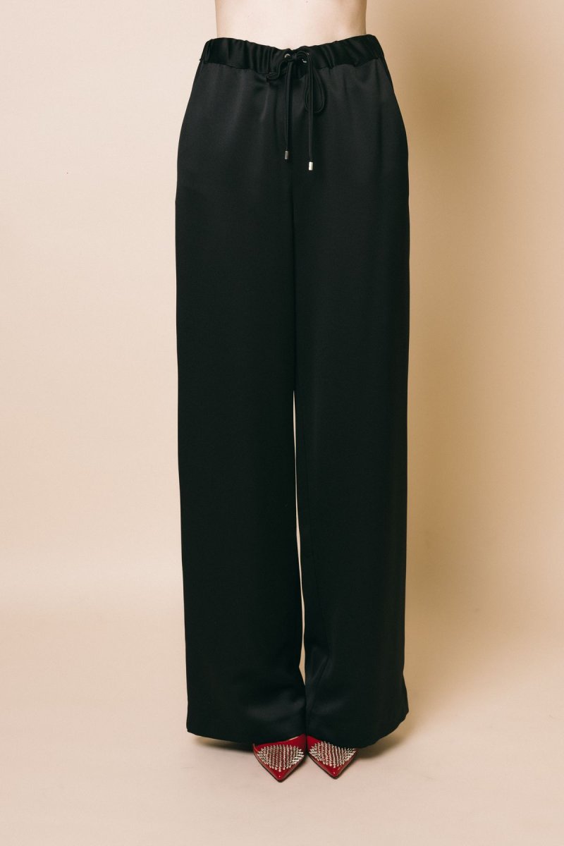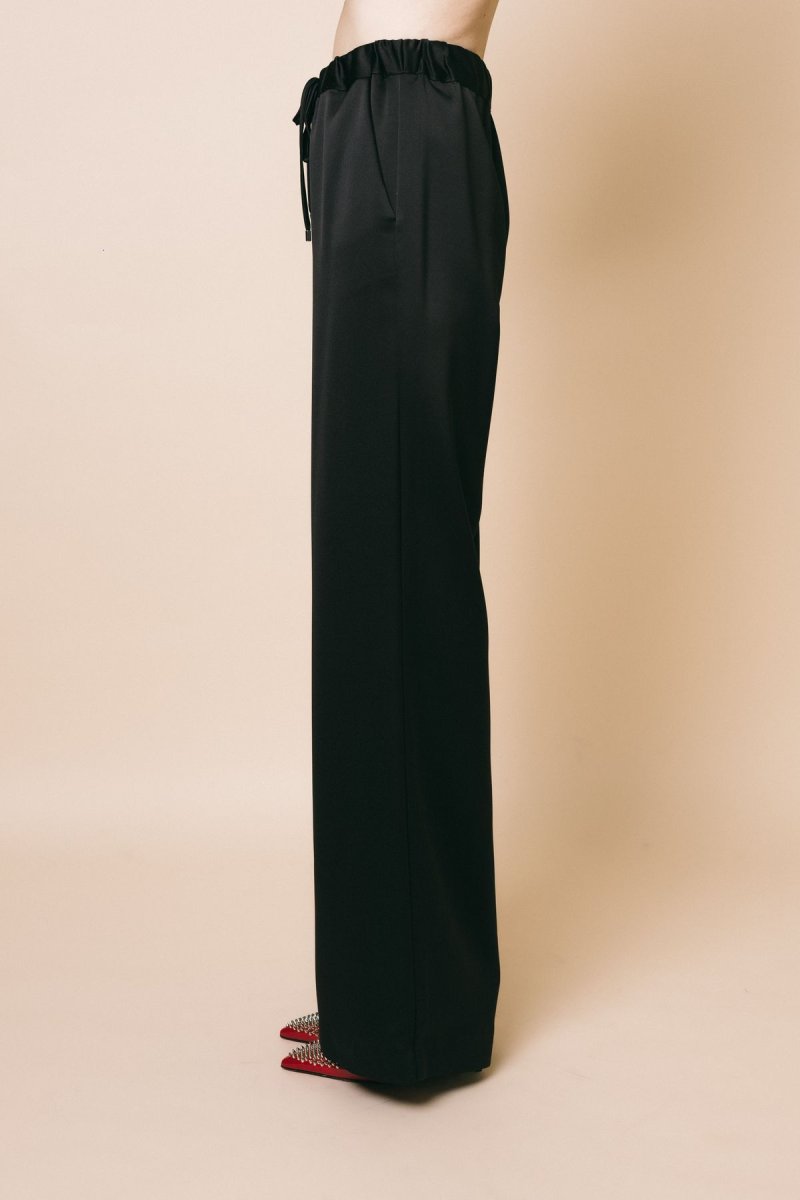 Pantalone palazzo in raso con coulisse in vita, fori strass