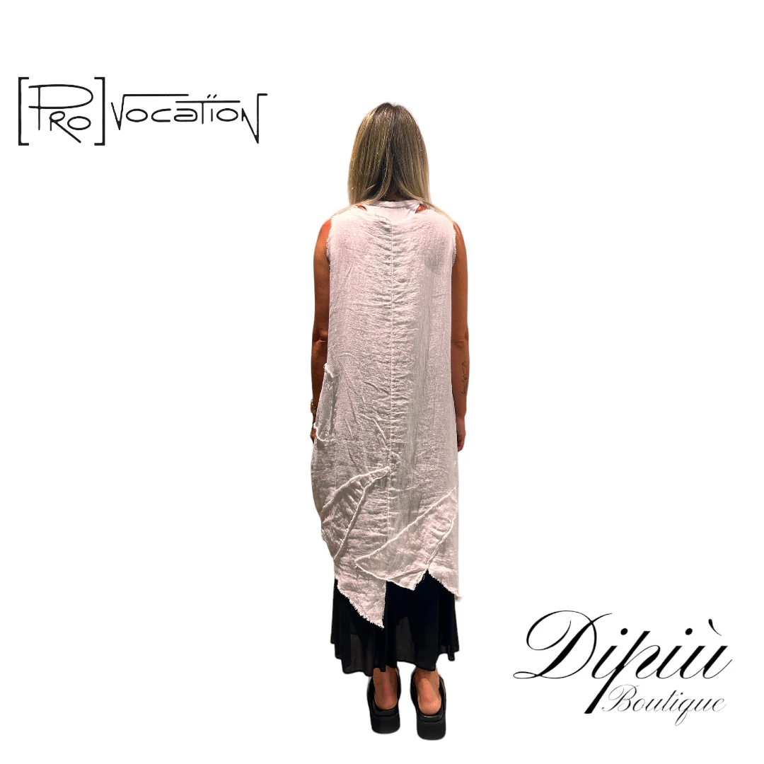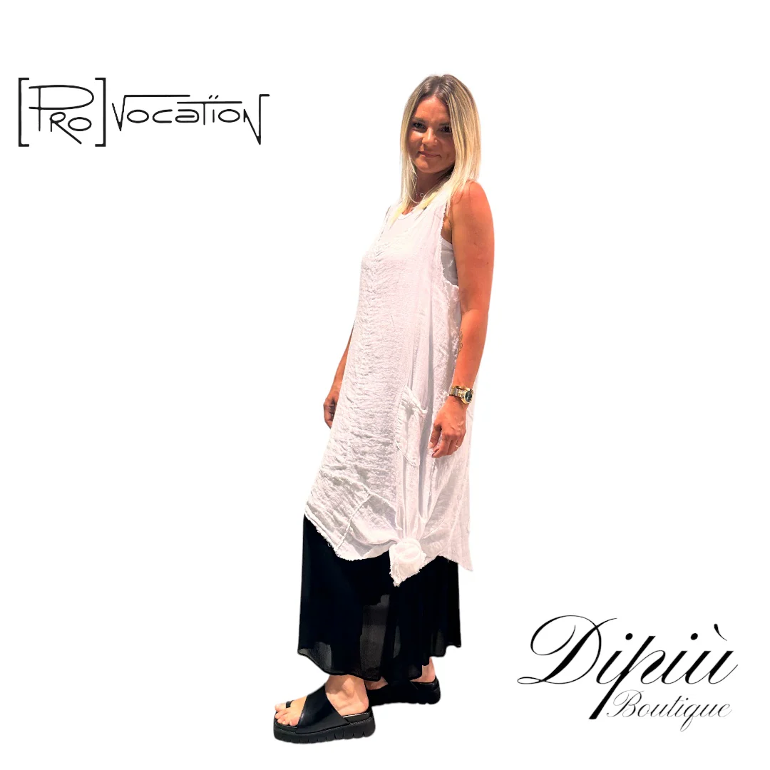 Abito lungo canotta patchwork,con punte laterale, 100% Lino . tg unica