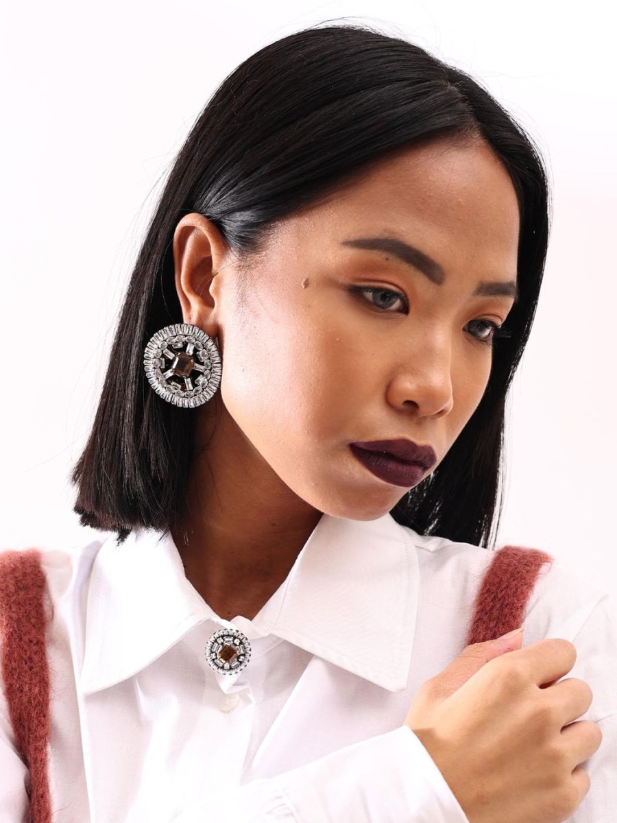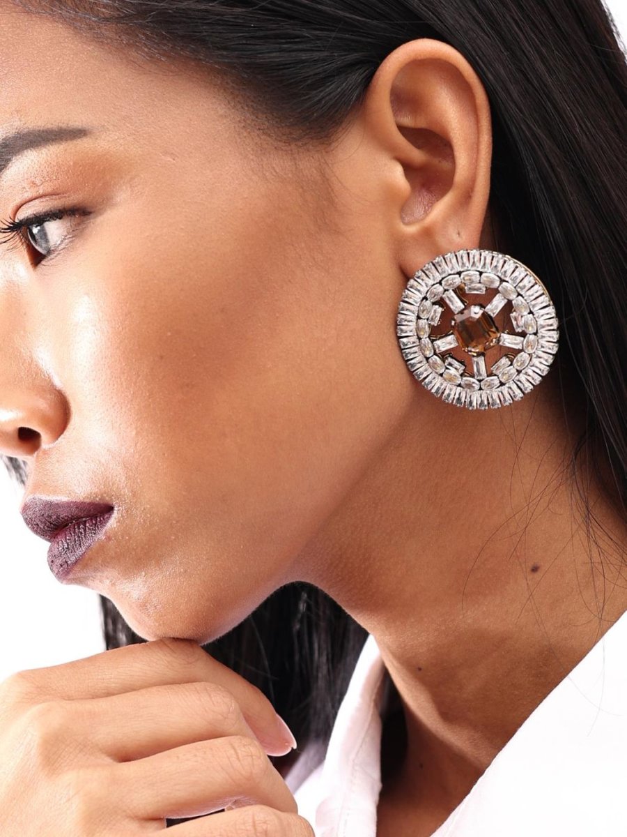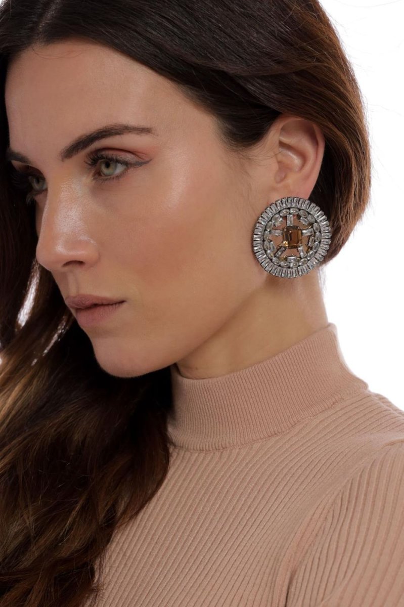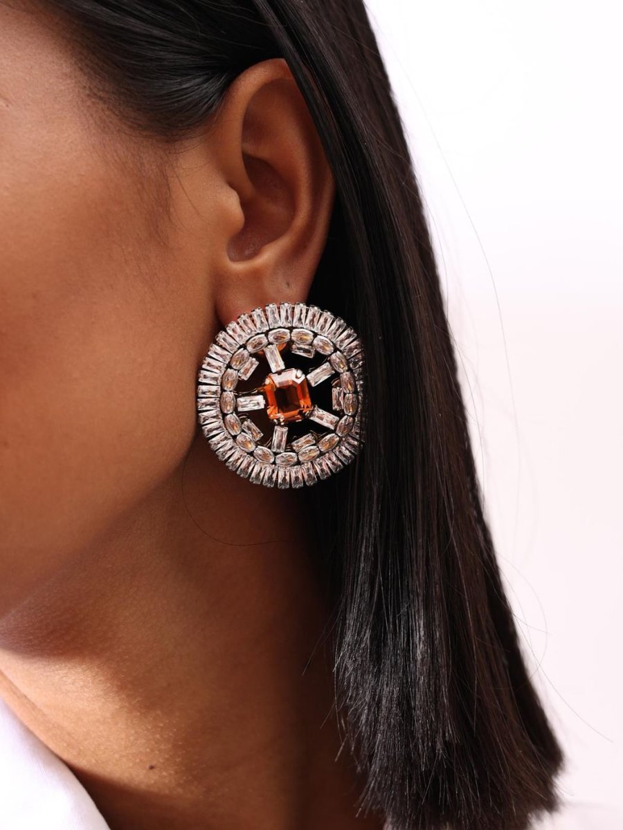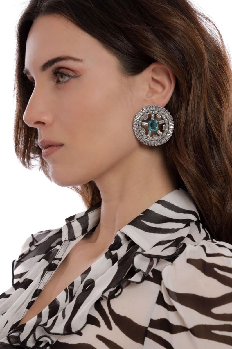 ORECCHINO TONDO C/CERCHIO DI BAGUETTES E PIETRA