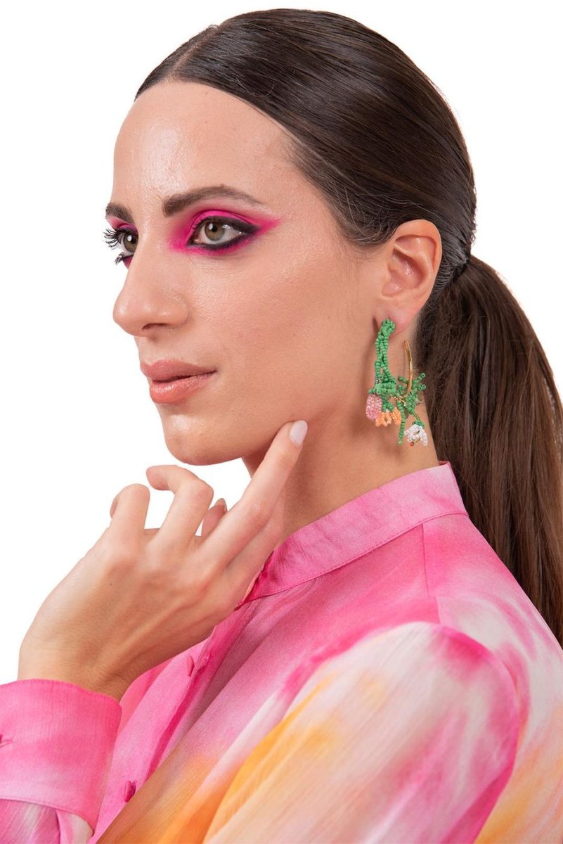 ORECCHINI CERCHIO + TRALCIO FIORI PERLINE