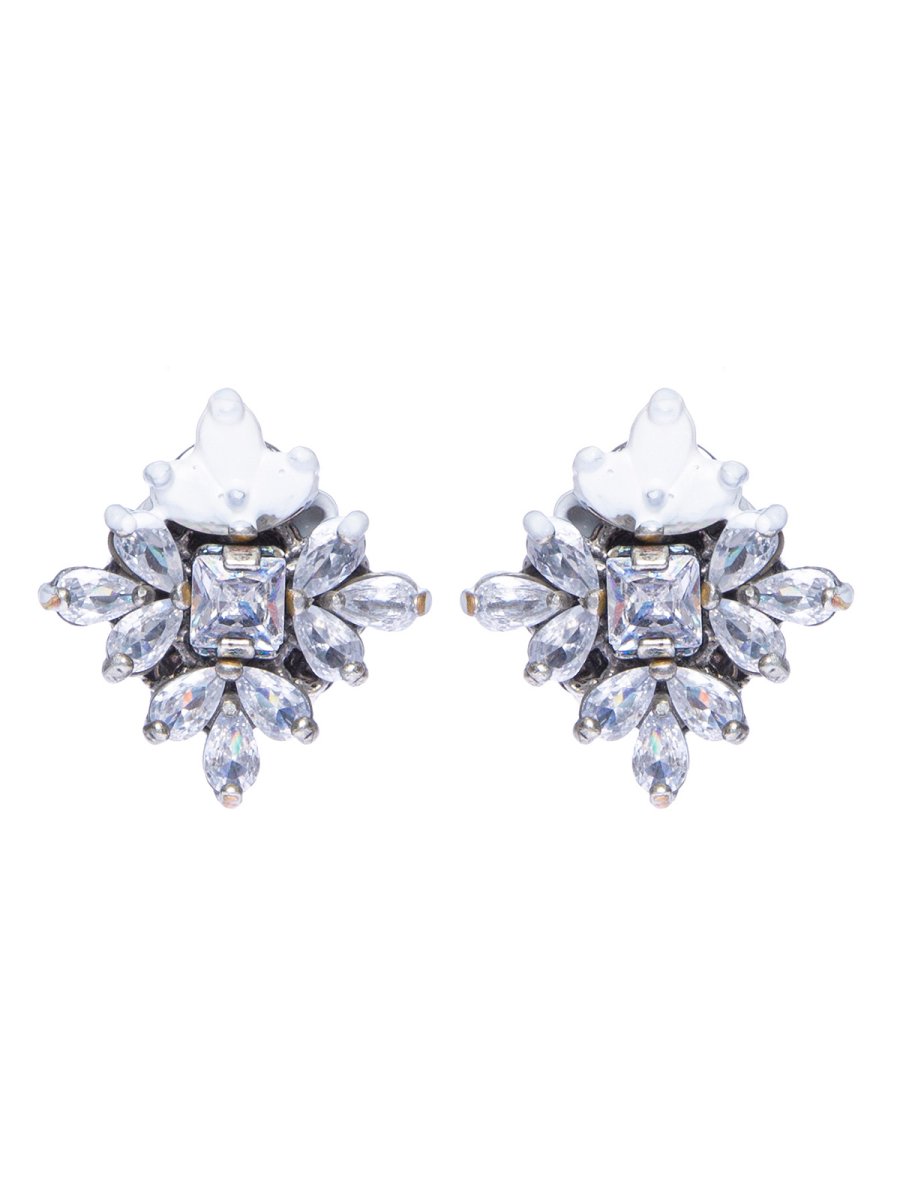 Orecchini al lobo crystal con dettaglio gemme smaltate off white