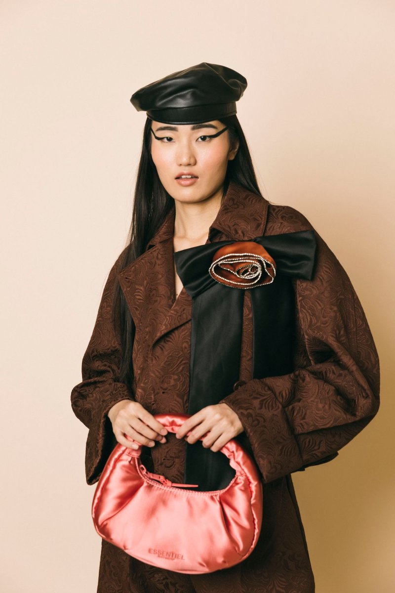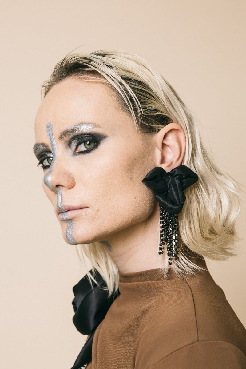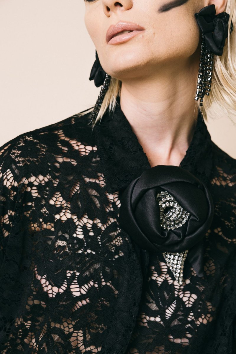 Orecchini lunghi fiore in raso nero frangia
