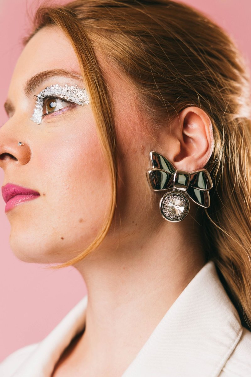 Un’eleganza senza tempo si unisce a un tocco di sofisticata luminosità in questo orecchino a clip dal design raffinato. Il fiocco, simbolo di grazia e femminilità, è realizzato in metallo lucido effetto specchiato, che dona un’aria di moderna raffinatezza.