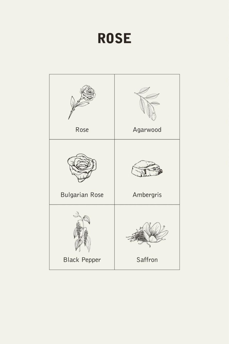 Rose è una fragranza dal carattere contemporaneo che rilegge il fiore simbolo per eccellenza in chiave terrosa e affumicata. Le note di rosa si intrecciano alla dolcezza sottile del fico, mentre la freschezza verde del fieno alleggerisce la composizione, accompagnata dalla profondità calda e avvolgente del tabacco. Un equilibrio ricercato, dall’animo elegante e deciso.