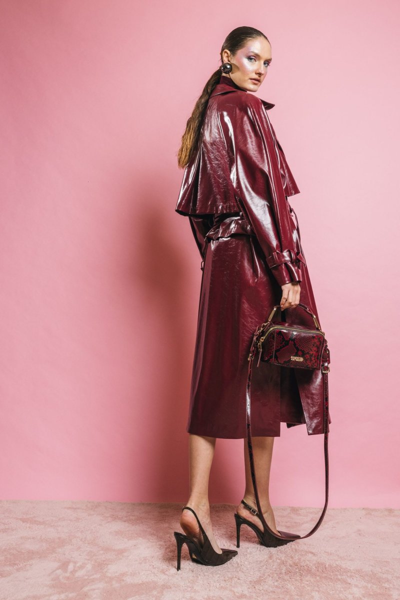 Trench in pelle vegana imbottito, caratterizzato da una costruzione sartoriale che unisce linee decise e funzionalità. Le spalline strutturate donano portamento, mentre la cintura in vita permette di modulare la vestibilità, esaltando la silhouette. L’imbottitura garantisce comfort e protezione, senza rinunciare alla leggerezza della linea. Un capo trasversale, ideale per essere interpretato sia in look sofisticati che in combinazioni più quotidiane.