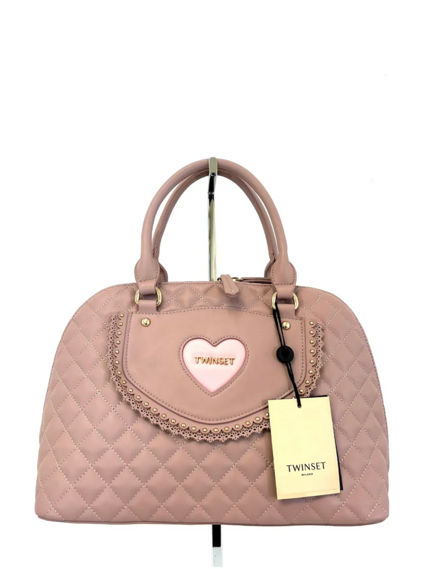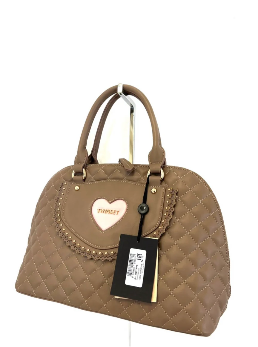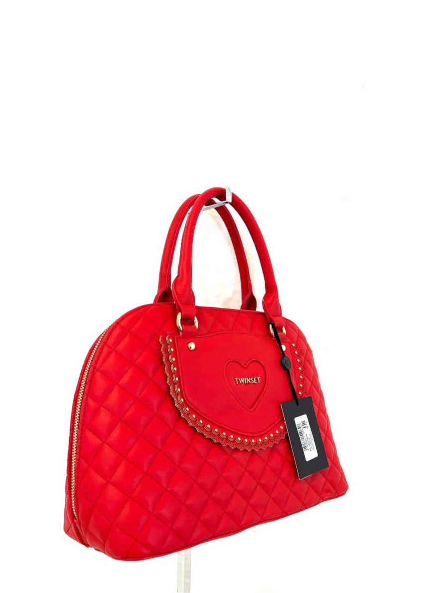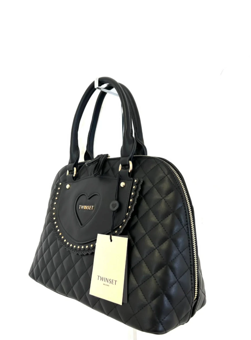Borsa rigida con manico corto trapuntata e decoro cuore