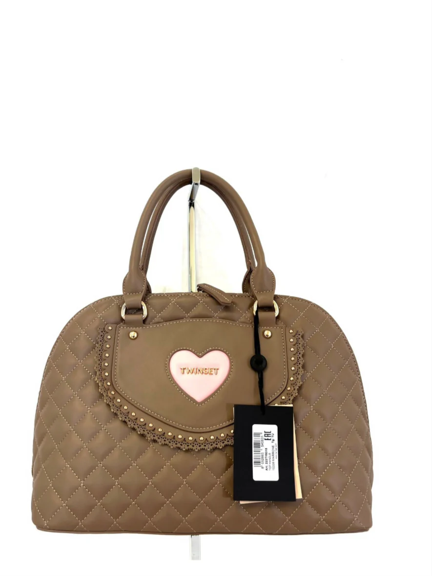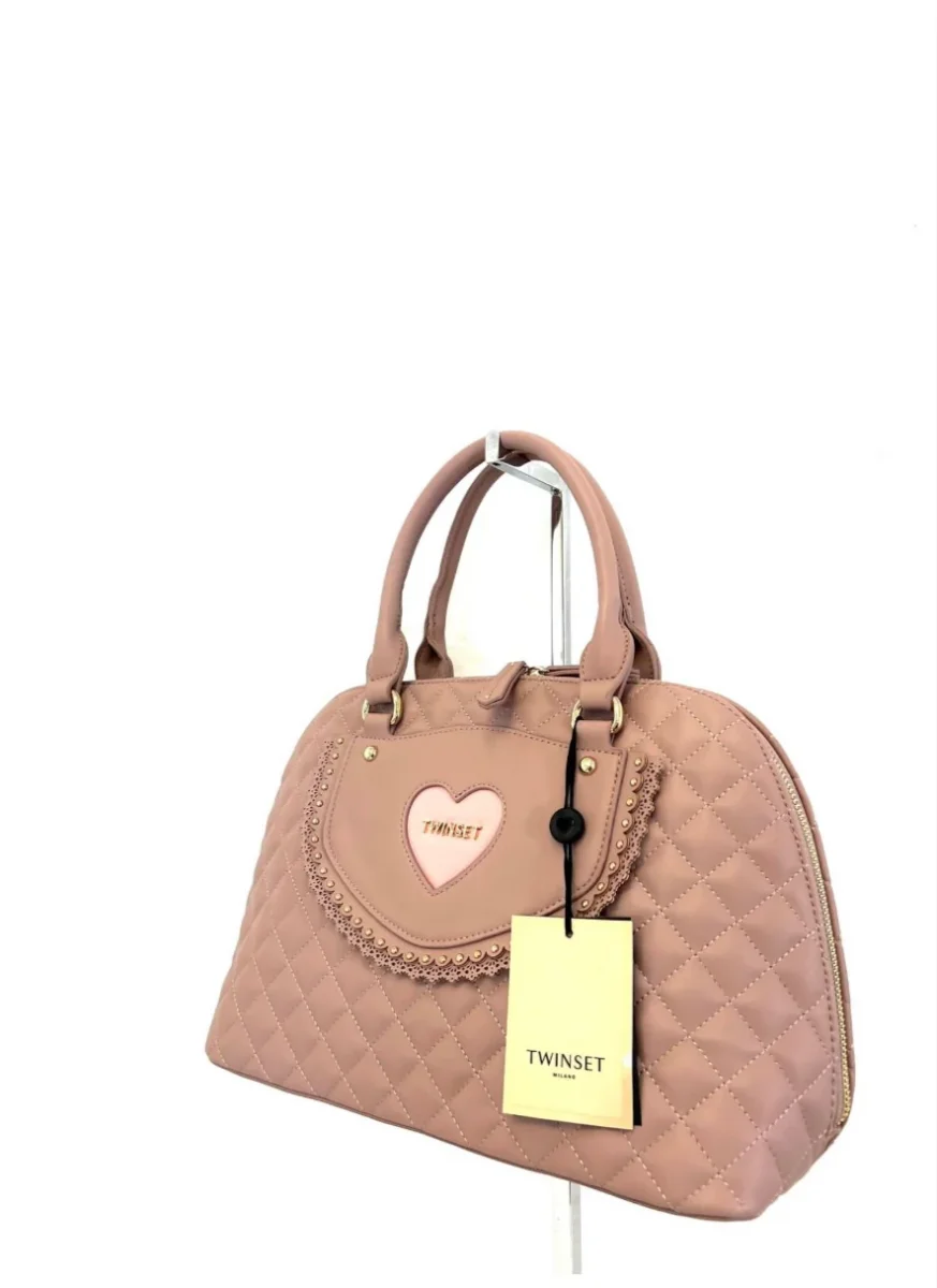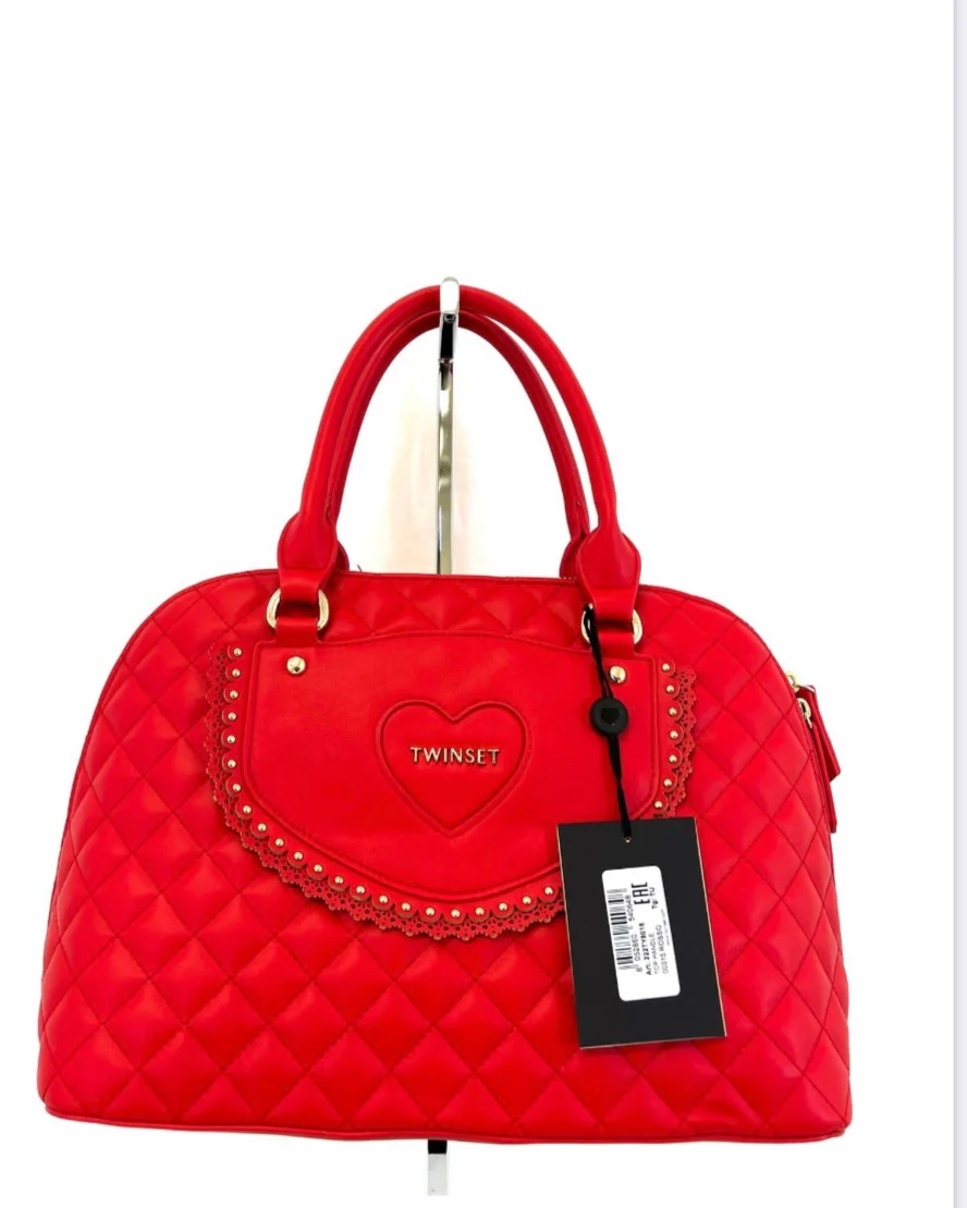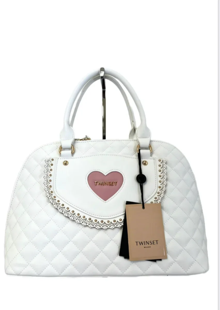 Borsa rigida con manico corto trapuntata e decoro cuore