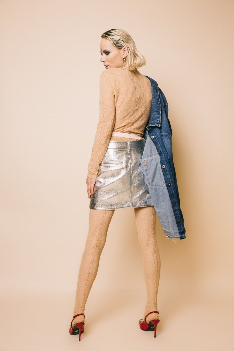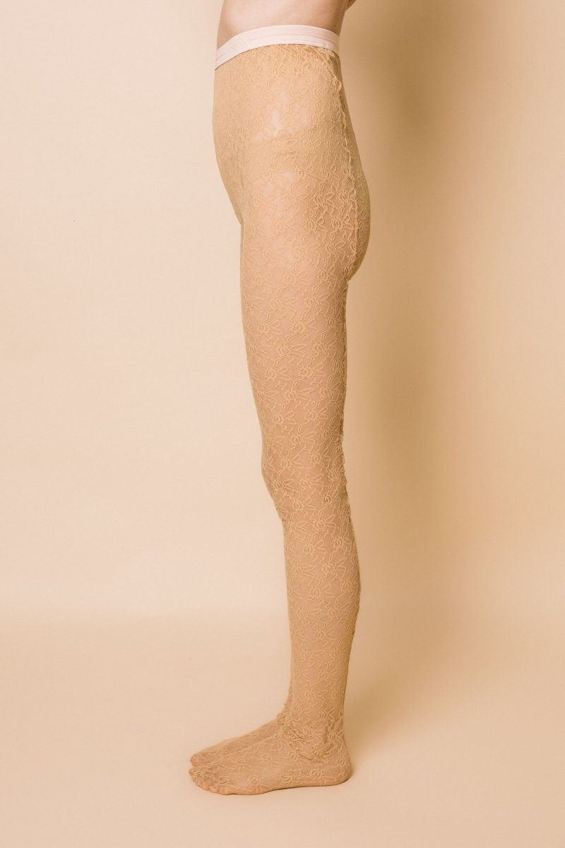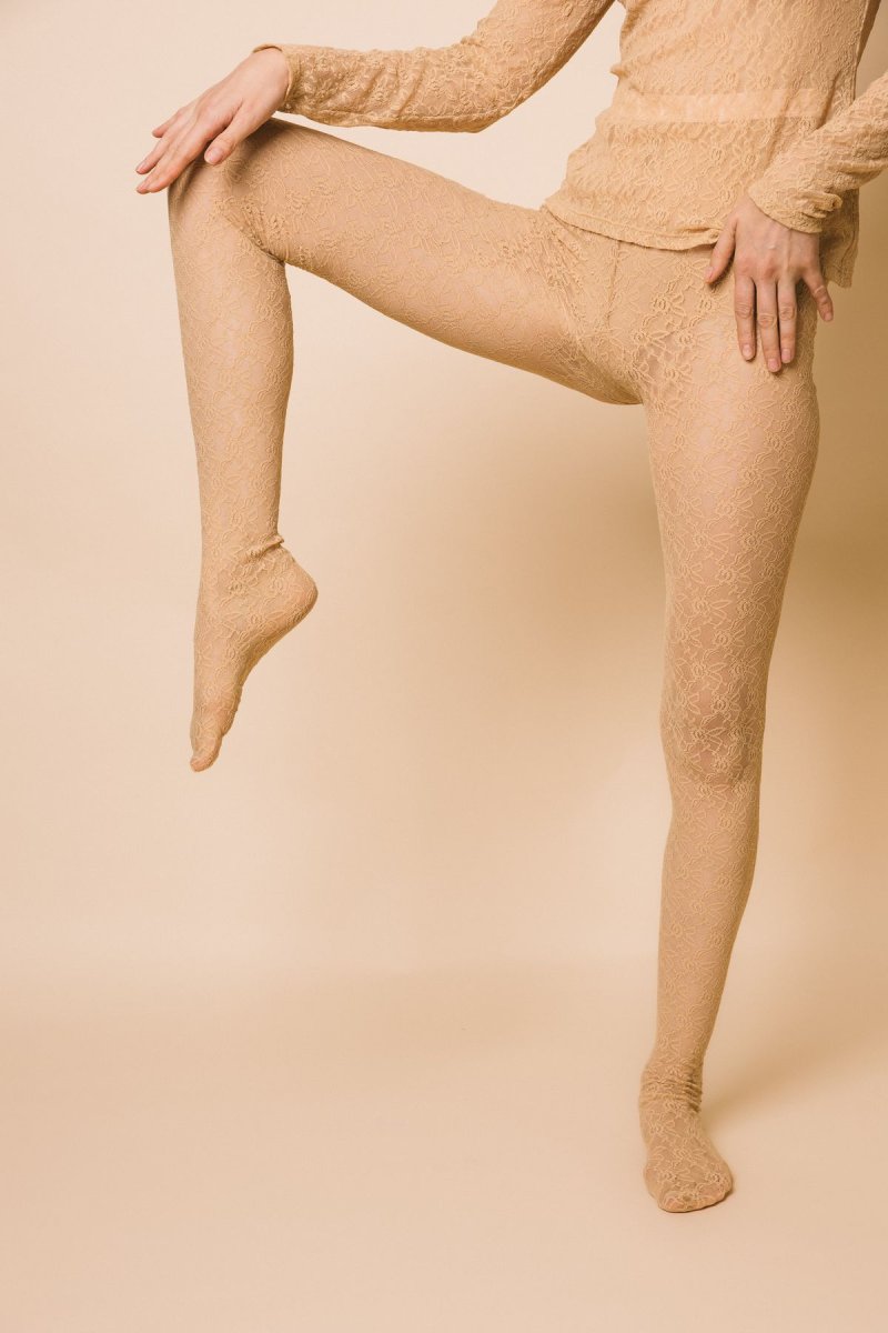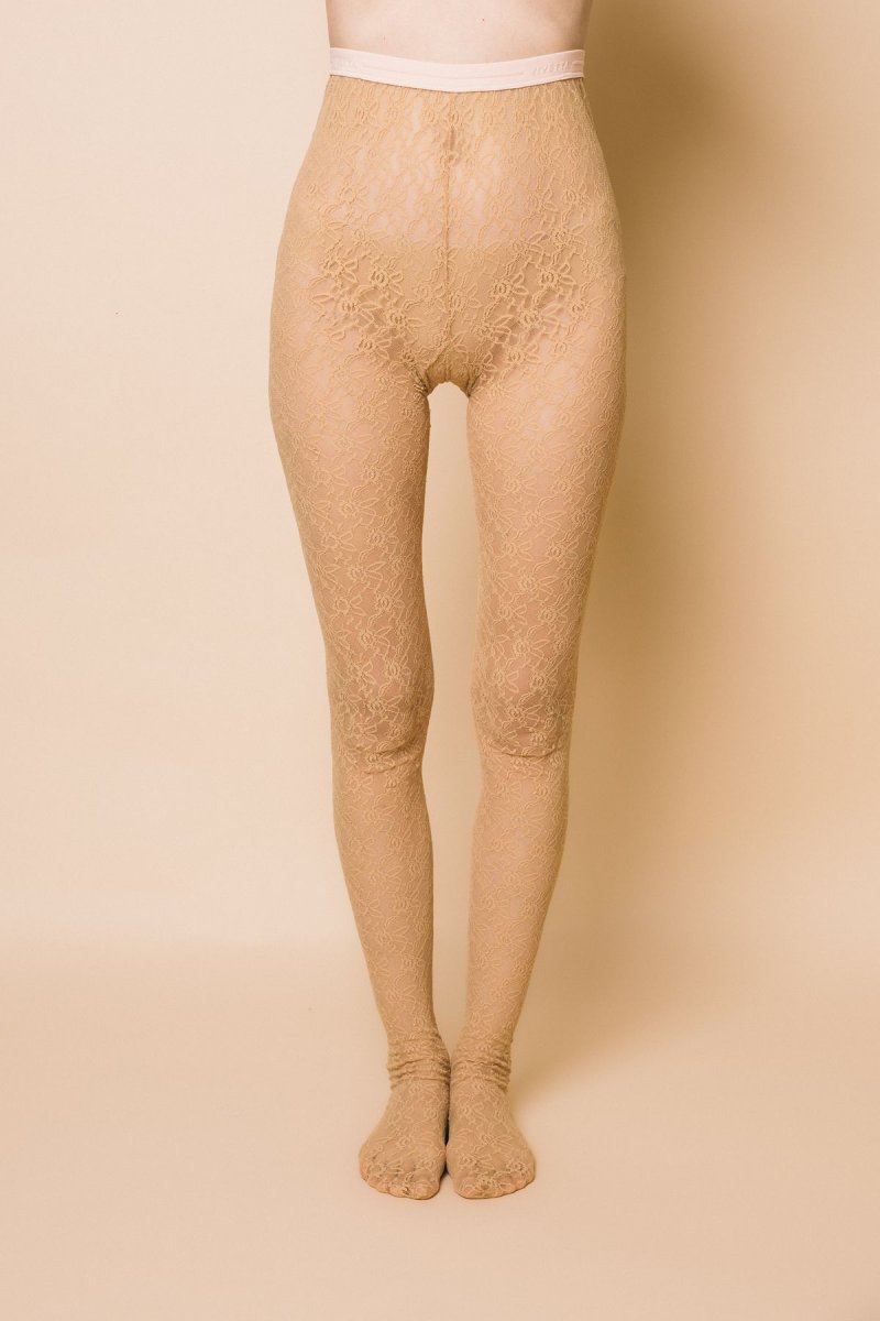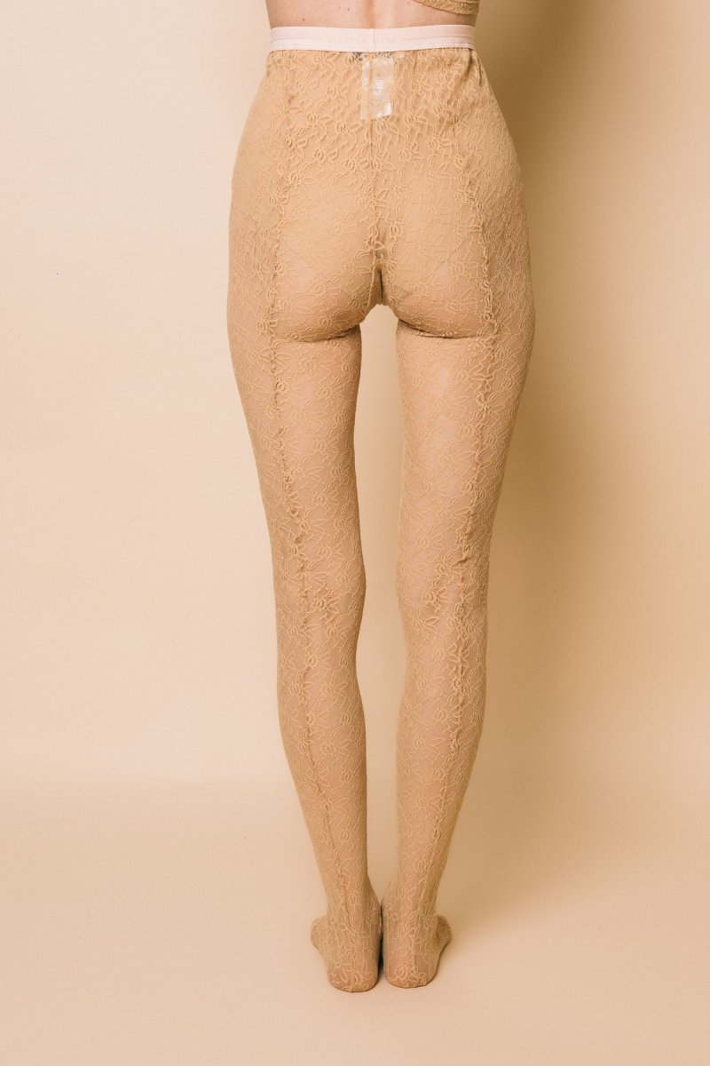 Collant in pizzo disegno fiori, elastico in vita con logo