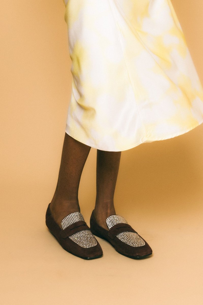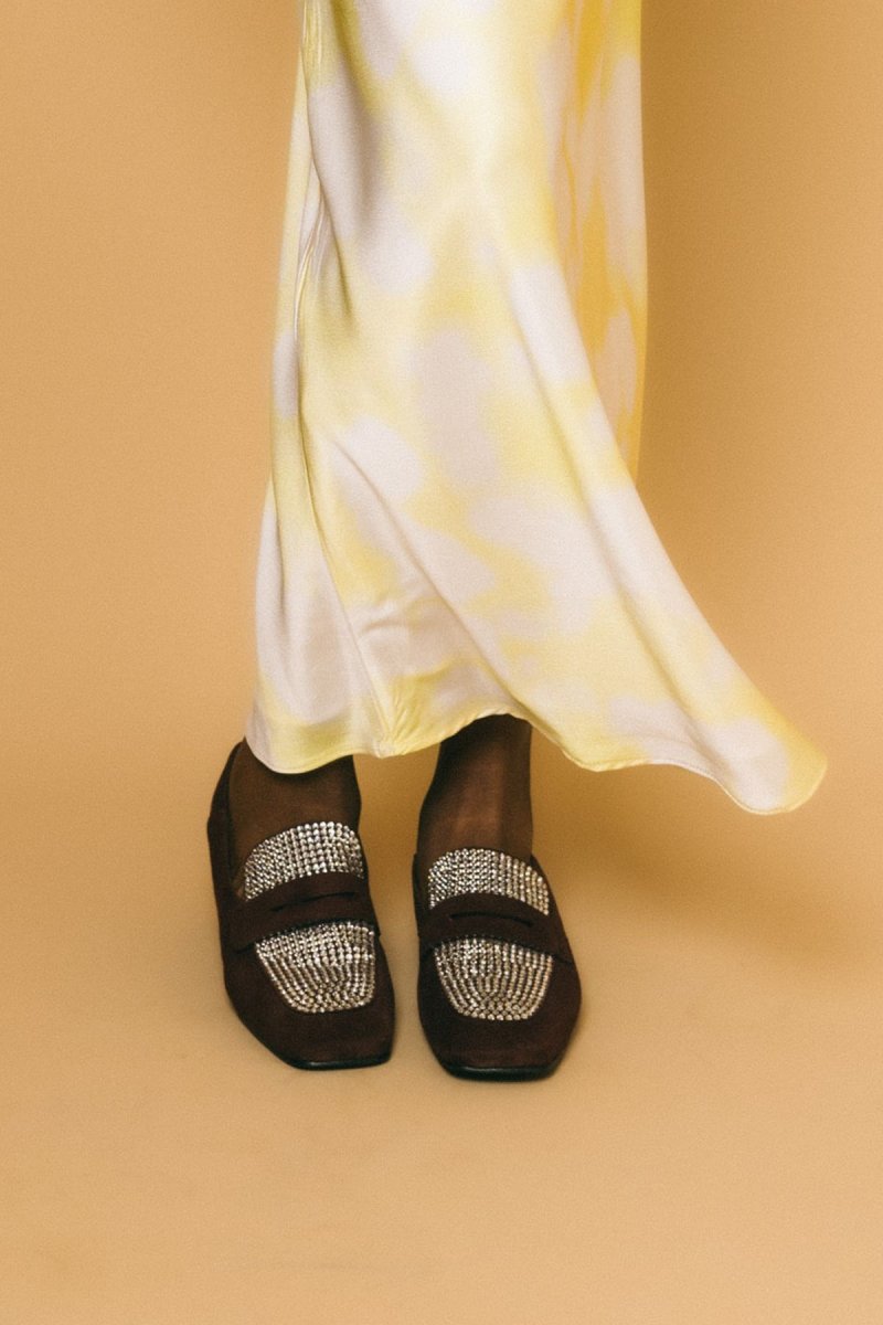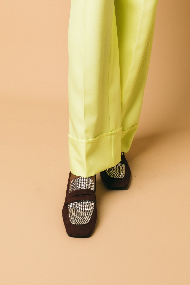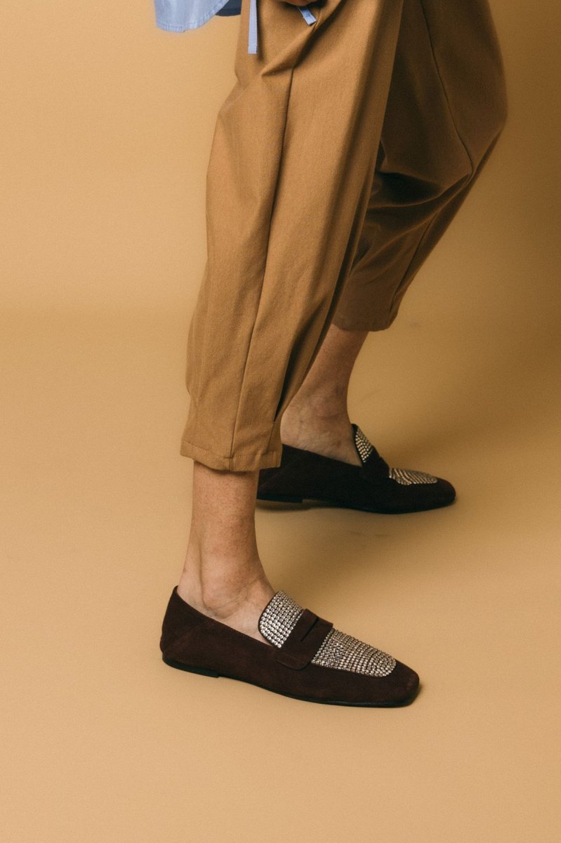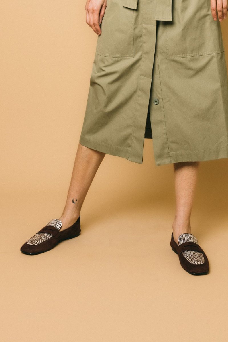 Mocassino in camoscio, dettaglio swaroski