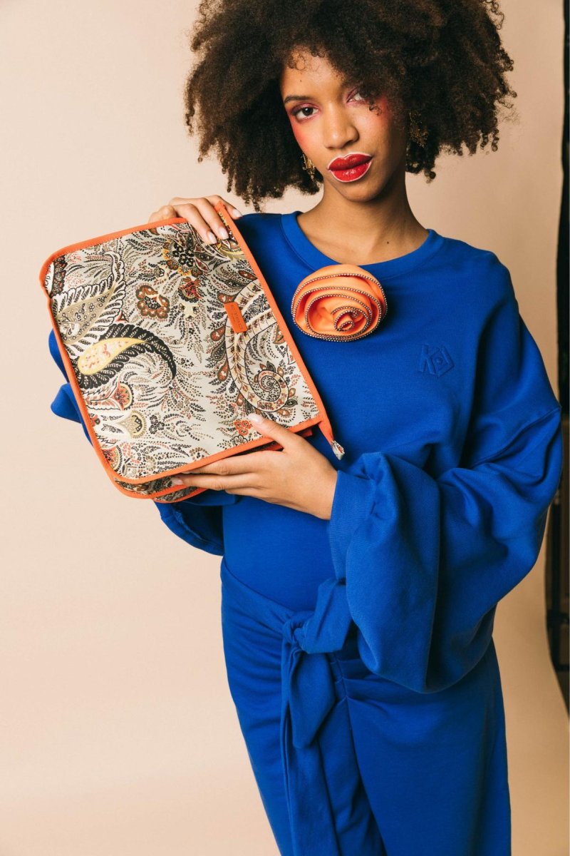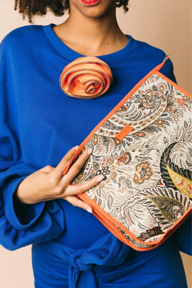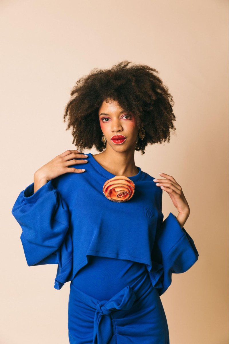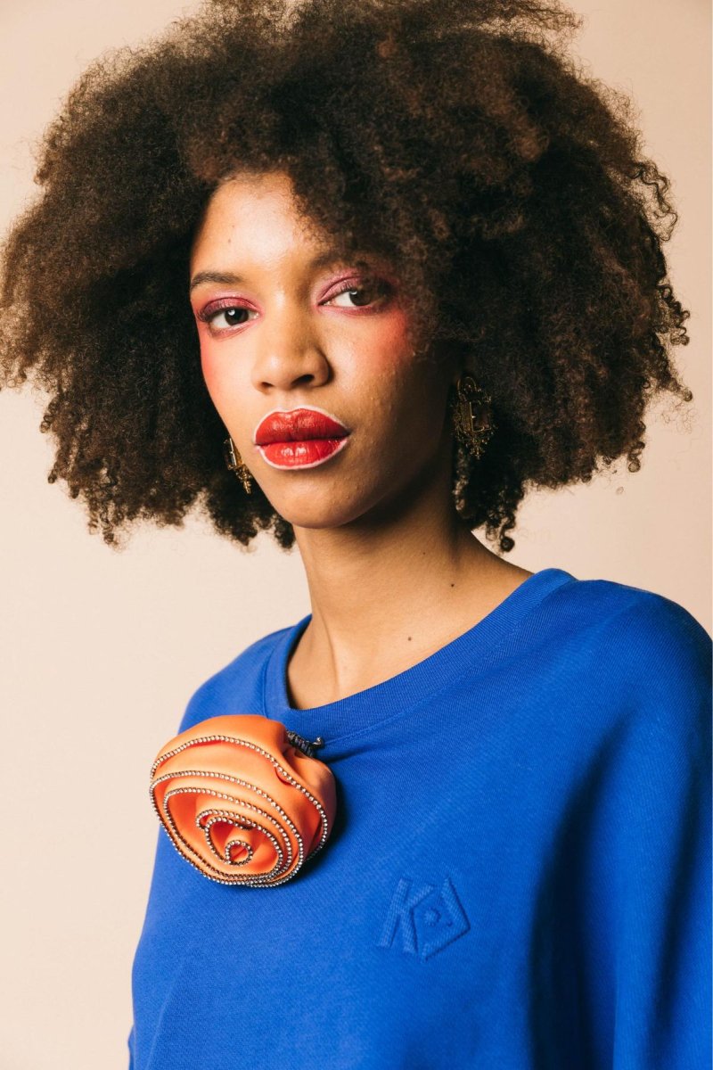 Spilla fiore maxi bocciolo in raso con profilo strass crystal