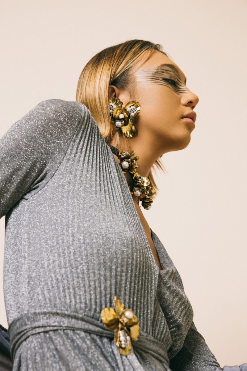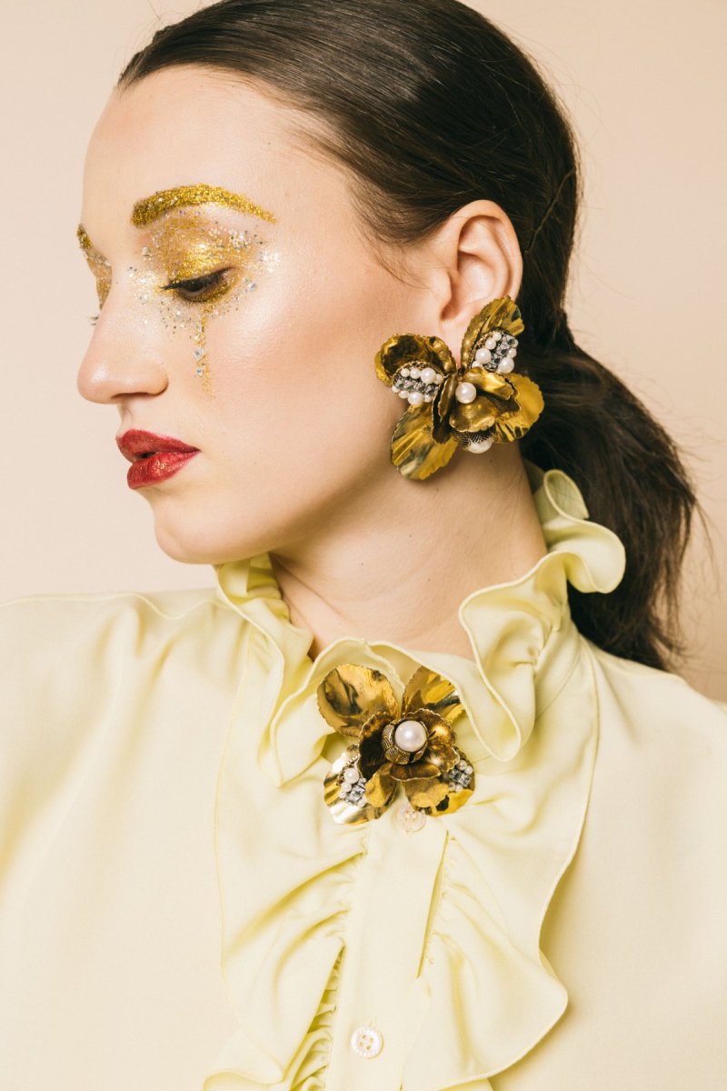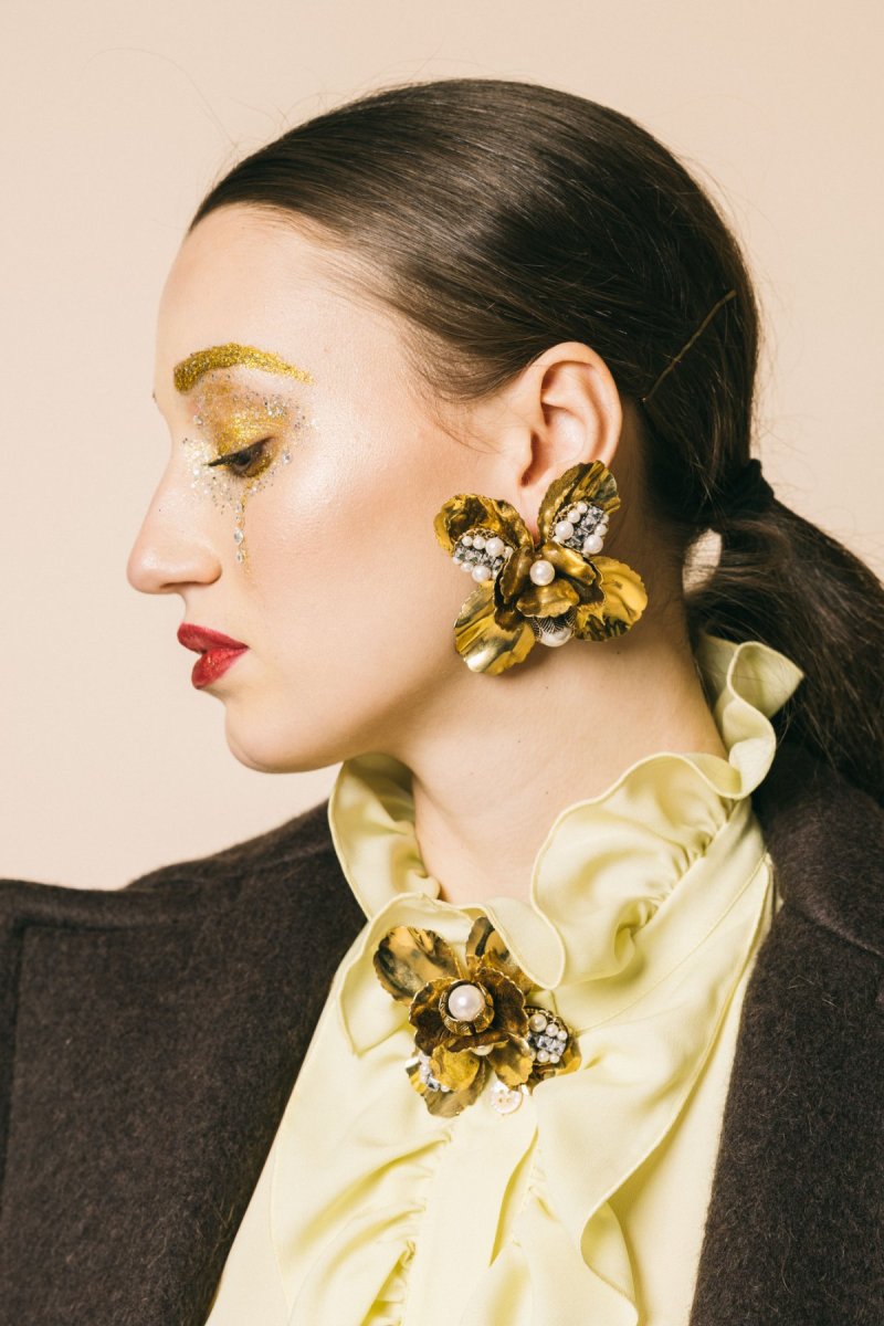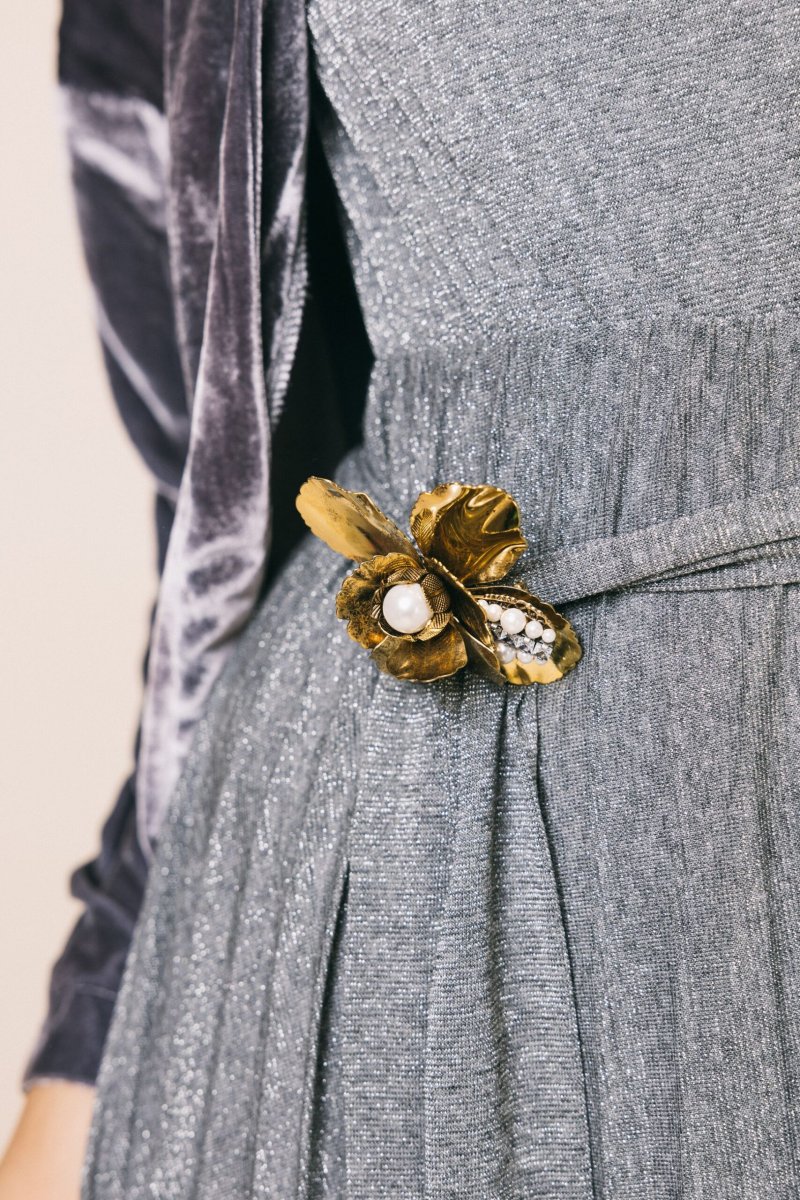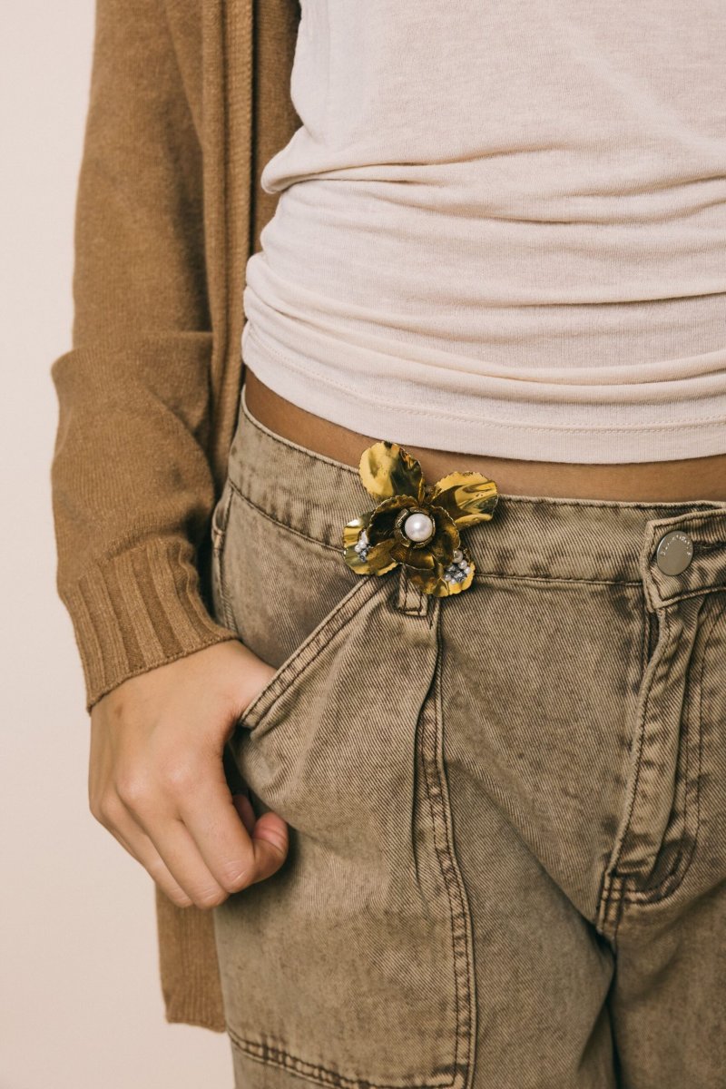 Spilla maxi fiore con perla e strass