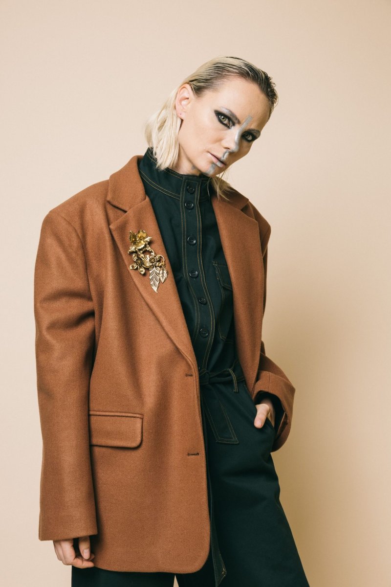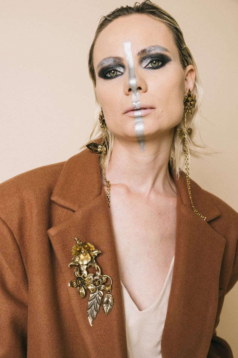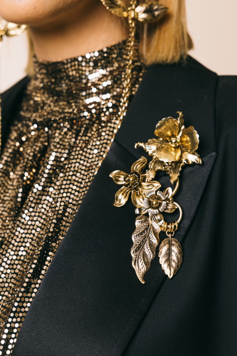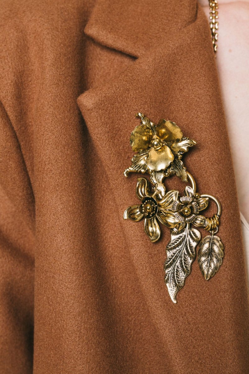 Spilla maxi fiori in metallo oro antico