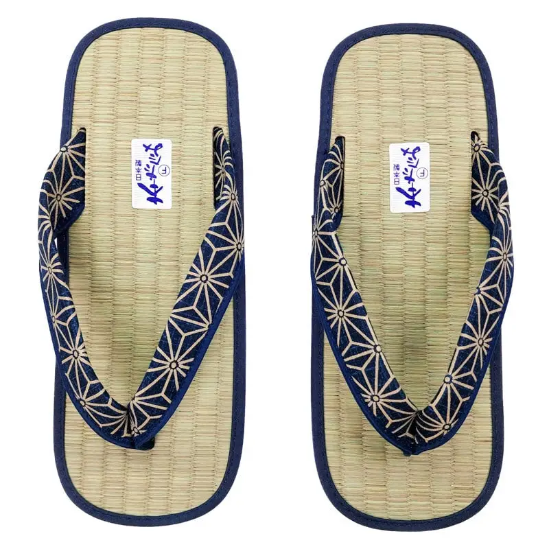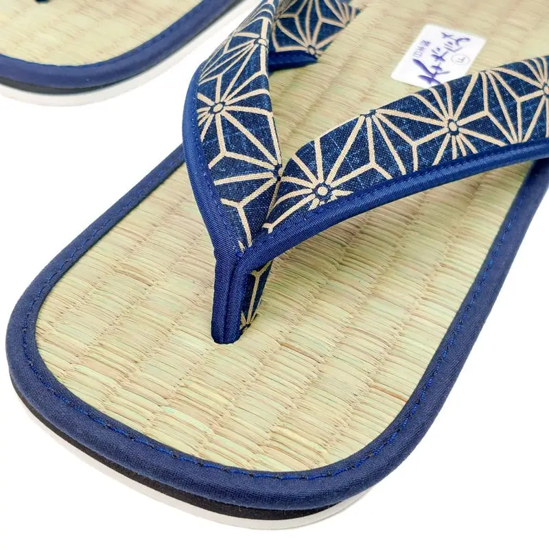 Zori giapponesi in paglia di giunco con motivo asanoha