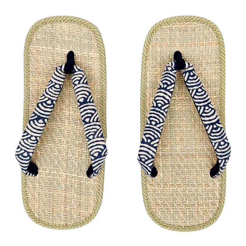 Zori giapponesi in erba malese con motivo Hanao Seigaiha Porta un tocco di eleganza giapponese nella tua vita quotidiana con questi zori realizzati in erba malese, rinomata per la sua durata, leggerezza e sensazione di freschezza naturale. Il cinturino in cotone hanao presenta il motivo seigaiha, simbolo di pace e serenitร . La tomaia in tessuto […]