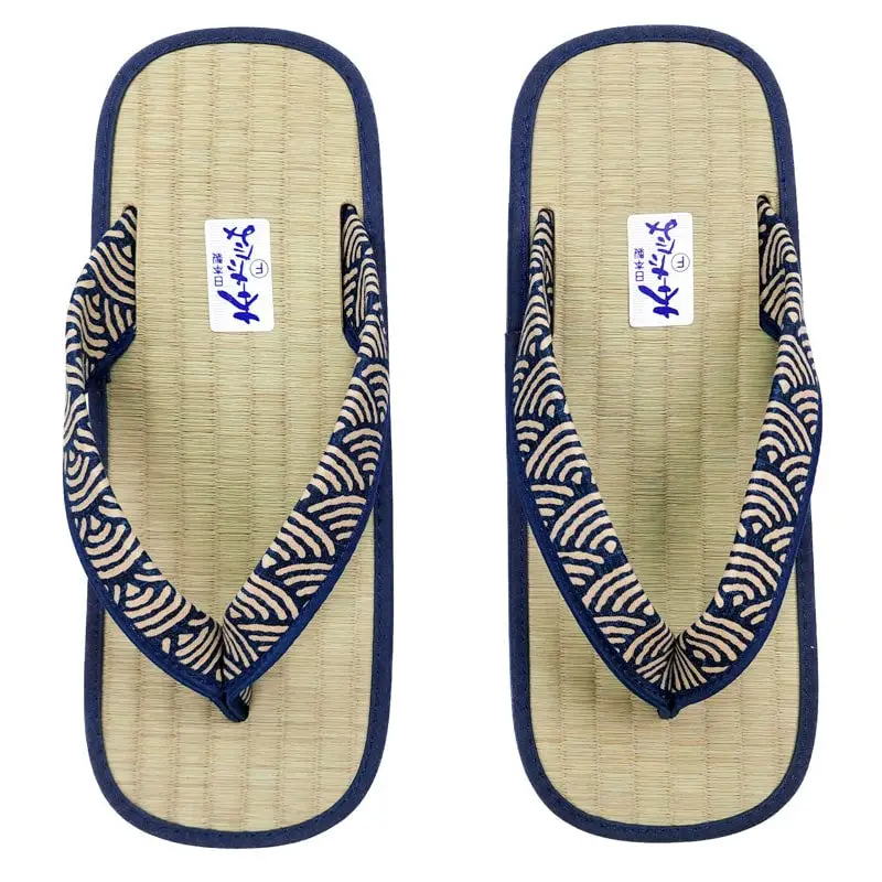 Zori giapponesi in paglia di giunco con motivo seigaiha